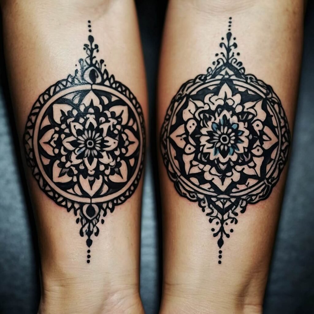 With these tasteful, symmetrical patterns that accentuate your strong bond, celebrate your partnership. Mirrored mandalas are a stunning representation of the balance and harmony in your relationship, and they are much more than just tattoos.