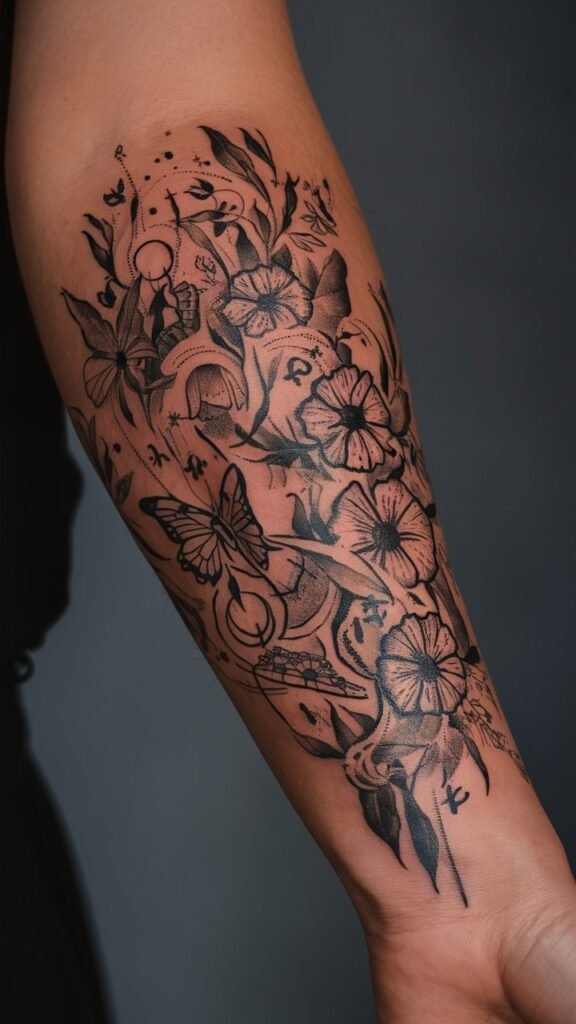 Butterflies represent transformation, beauty, and freedom, and they’re often seen as symbols of the soul. In many cultures, butterflies signify the spirit of a loved one visiting, making them a popular choice for memorial tattoos.