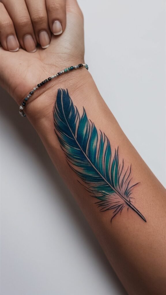 Placement Suggestions: The forearm, ribcage, or along the spine work well for feather tattoos.