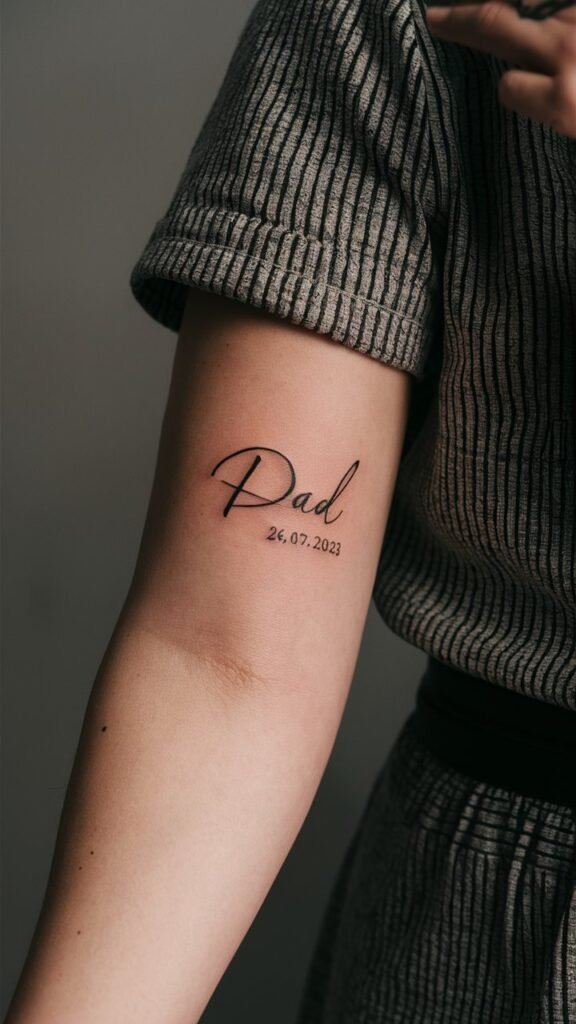 One of the simplest ways to honor a loved one is by tattooing their name and the date they passed or a significant date you shared. This is a classic memorial tattoo choice that carries a lot of sentiment.