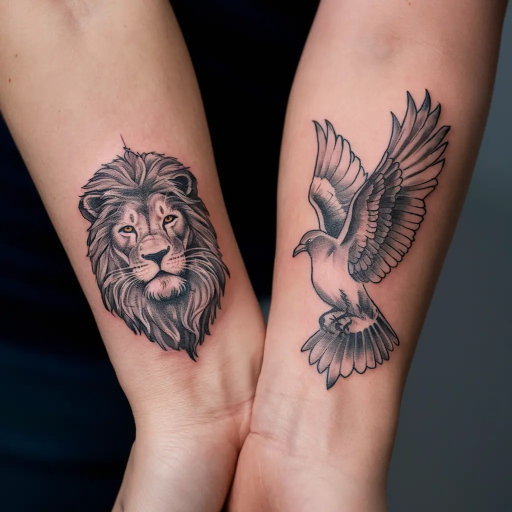 Tattoo Meaning: Choose animals that represent each person’s spirit or character. For example, one might be a lion for strength, while another might choose a bird for freedom.