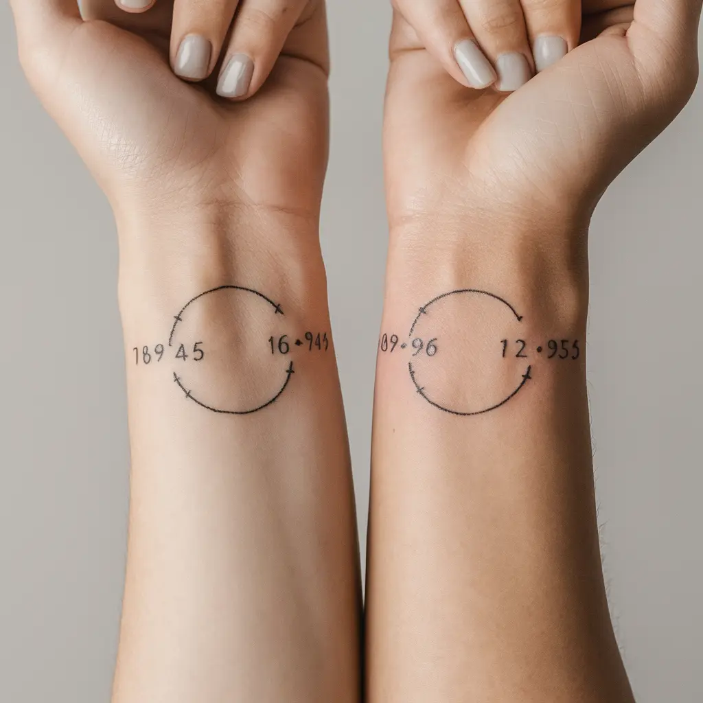 Tattoo Meaning: This design involves tattooing the coordinates of a place that means something special to your friendship – like the place you met, a memorable trip, or where you’ve shared great moments together.