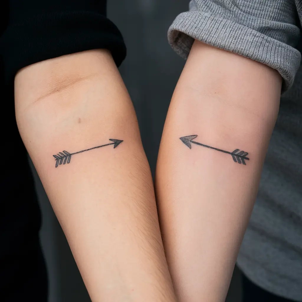 Tattoo Meaning: Arrows represent direction, movement, and protection. A minimalist arrow tattoo on each of you shows that although you may all be heading in different directions, you’re still traveling together as friends.
