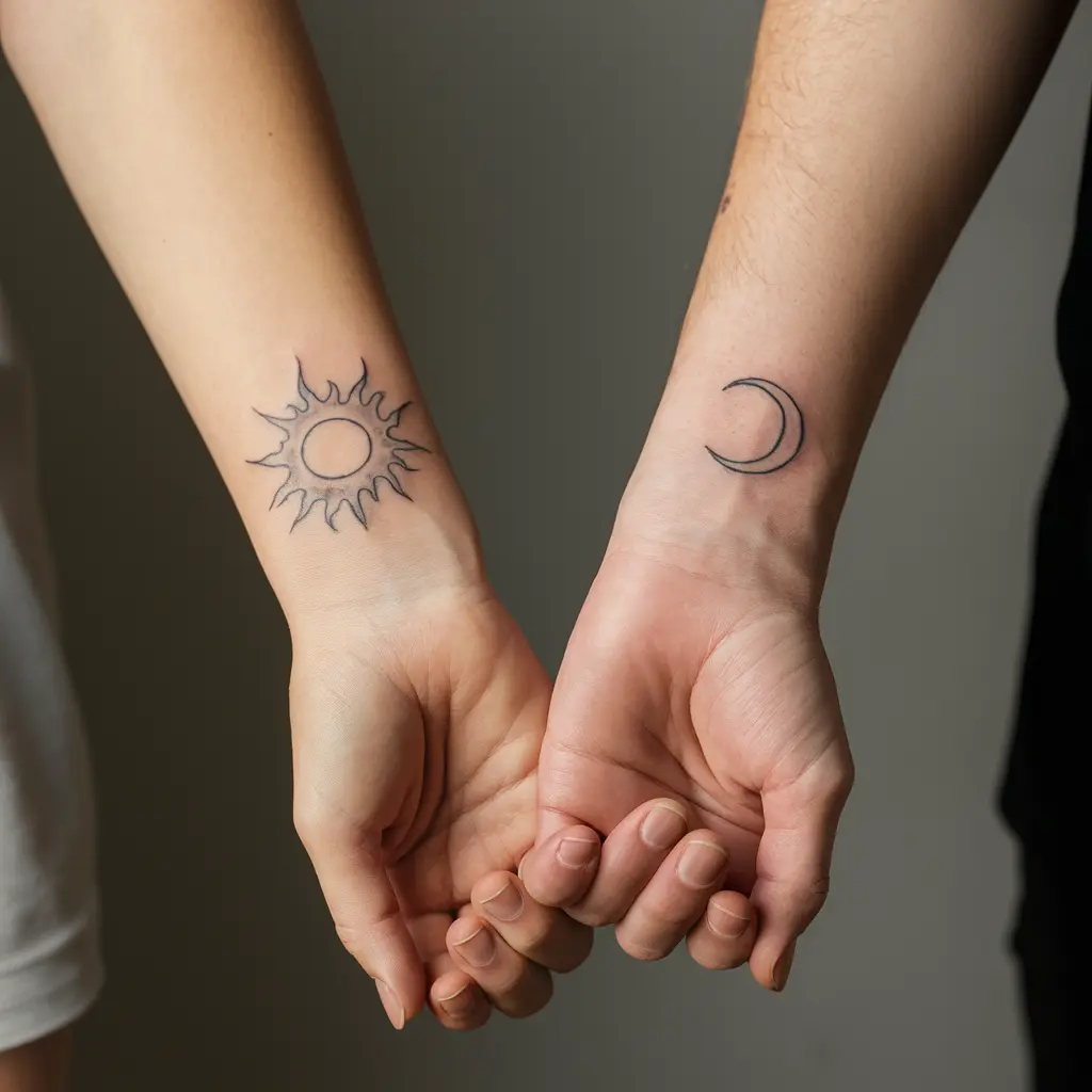 Description: A sun for one sibling and a moon for the other. The sun represents vitality and energy, while the moon symbolizes calm and intuition. Together, they balance each other.