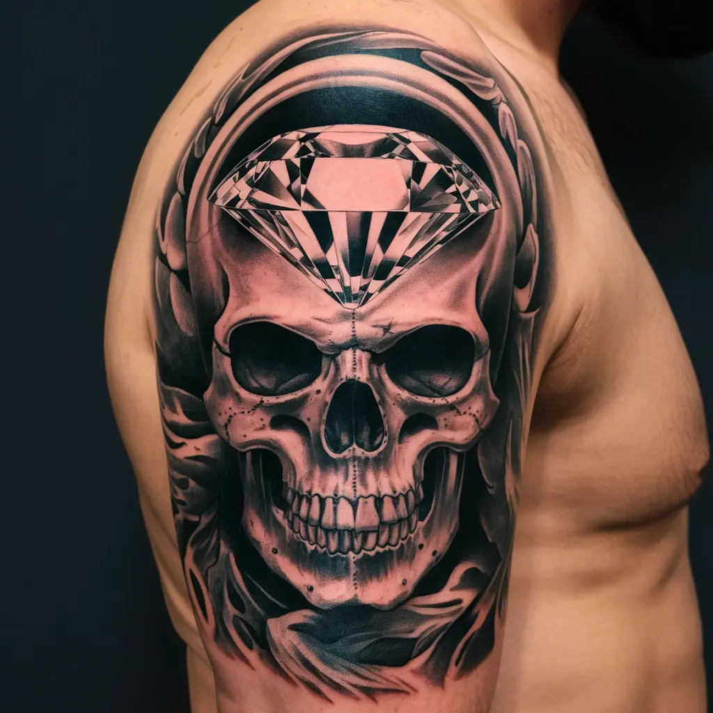 For those who love a mix of edgy and elegant, a diamond skull fusion tattoo is a stunning choice. You can incorporate a skull with a diamond embedded in its forehead or eye socket, combining life and death in one powerful design. It’s a unique way to showcase both the beauty and the fragility of life.