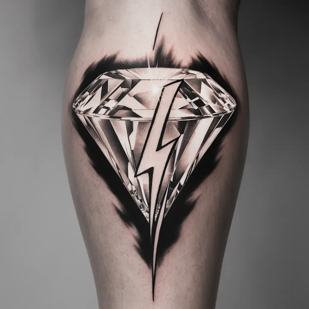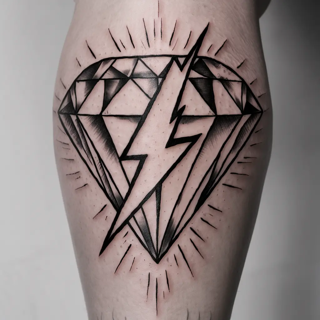 This design combines a diamond with a lightning bolt shooting through it. It’s a dramatic and energetic tattoo that represents power, energy, and resilience. It’s perfect for someone who wants to convey strength and dynamism in their design.