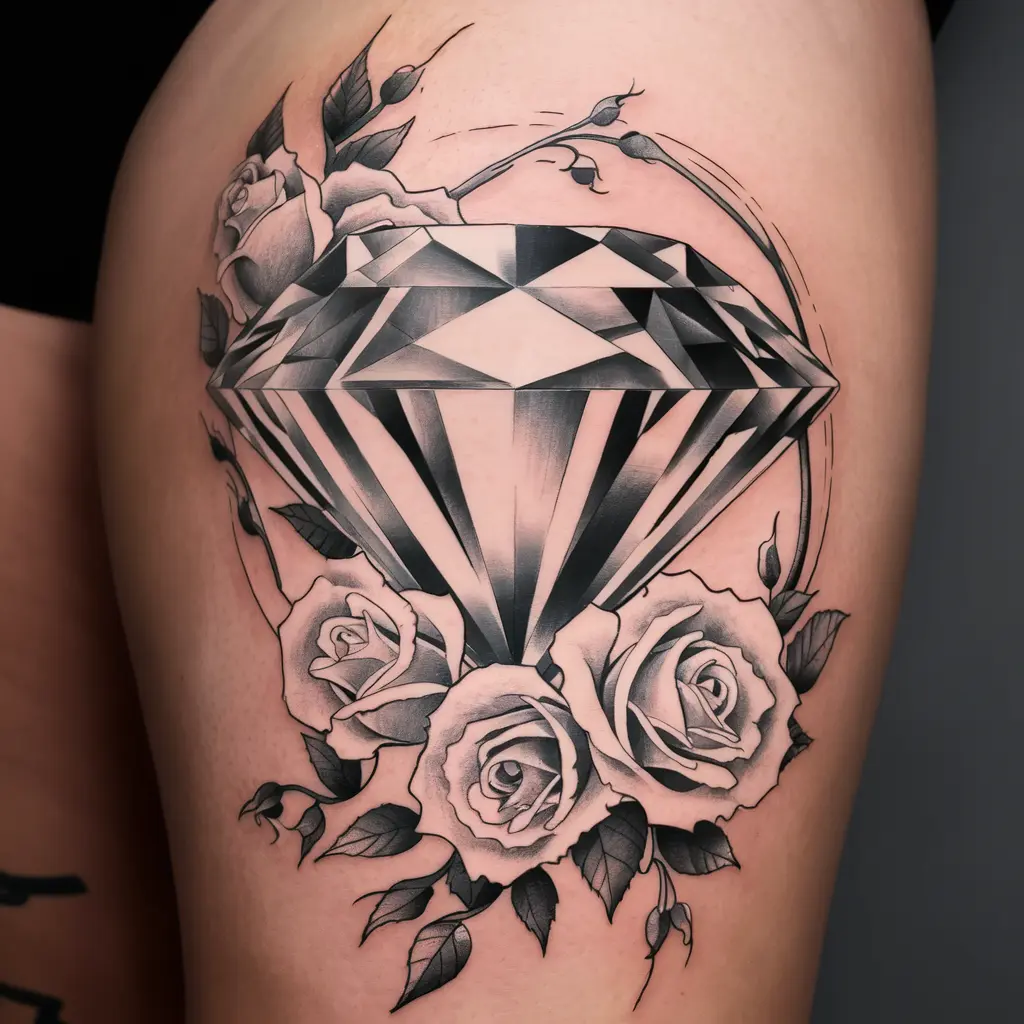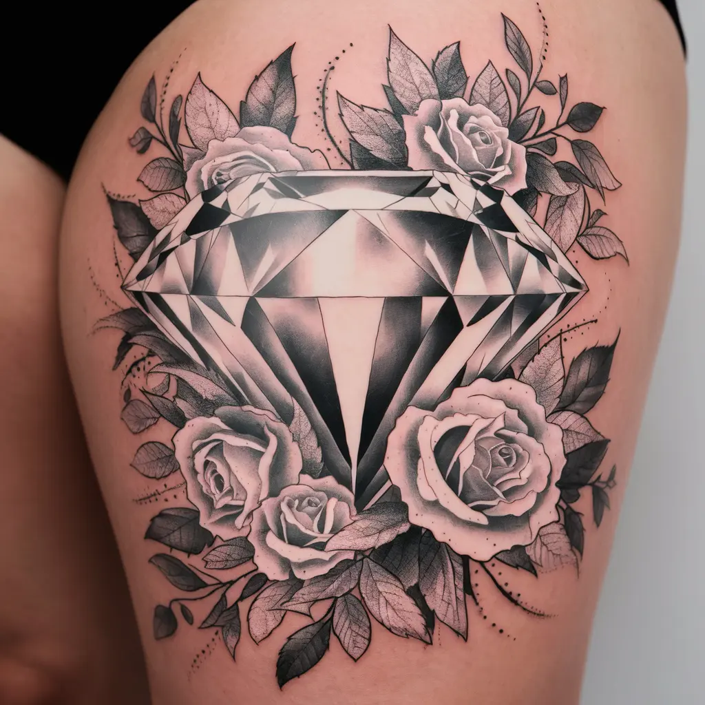 Imagine a diamond surrounded by delicate flowers such as roses, lotus petals, or even wildflowers. This design combines the strength of the diamond with the natural beauty of flowers, creating a powerful yet soft tattoo. It’s a perfect representation of beauty, love, and resilience.