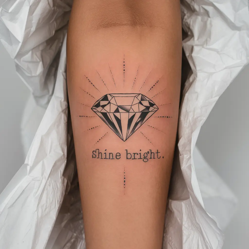 Combine your love for diamonds with meaningful words. A diamond tattoo paired with a motivational quote like “Strength within” or “Shine bright” makes a tattoo that not only looks stunning but also inspires. It’s a great way to reflect your personal philosophy or beliefs.