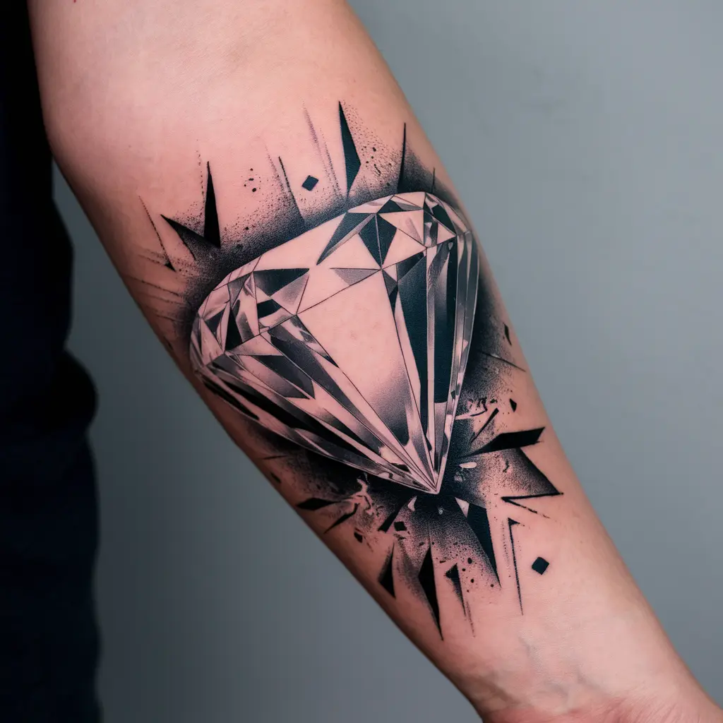 An abstract diamond tattoo uses fragmented or unusual shapes to create a design that feels dynamic and modern. This tattoo is for someone who loves unconventional art and is drawn to more avant-garde, creative expressions of beauty.