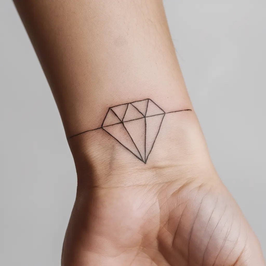A minimalist diamond tattoo is simple, sleek, and powerful. The clean lines of this design highlight the geometric perfection of a diamond without overwhelming the skin. It’s a versatile design that can be placed anywhere, from the wrist to the ankle, and works well for those who want a subtle, understated piece of art.