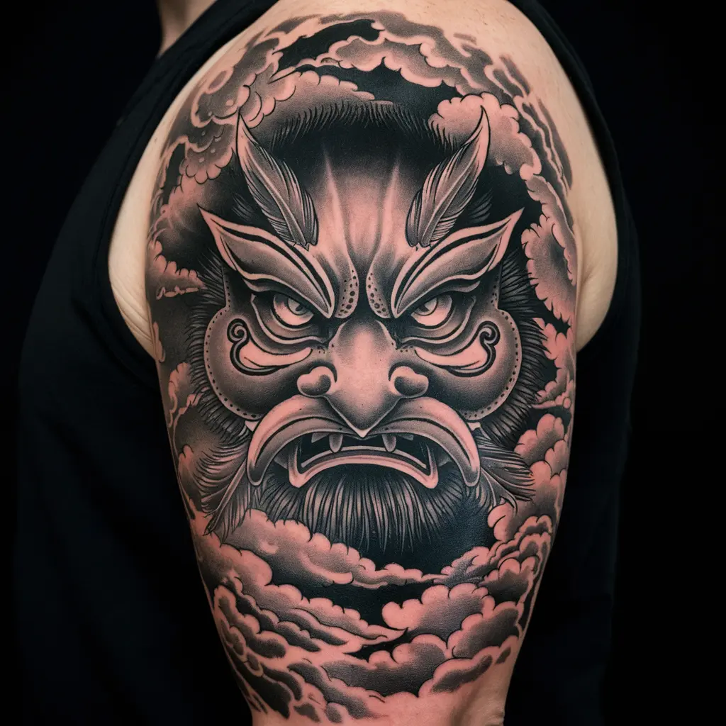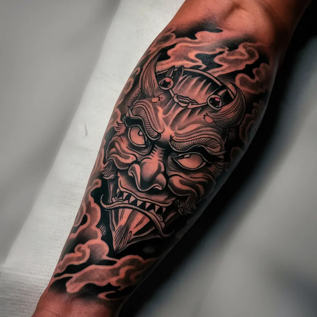 Tengu are mythical bird-like creatures from Japanese folklore. Tengu masks often represent power, wisdom, and protection. They are considered fierce protectors of nature and can be an awesome tattoo design for someone seeking strength and protection.