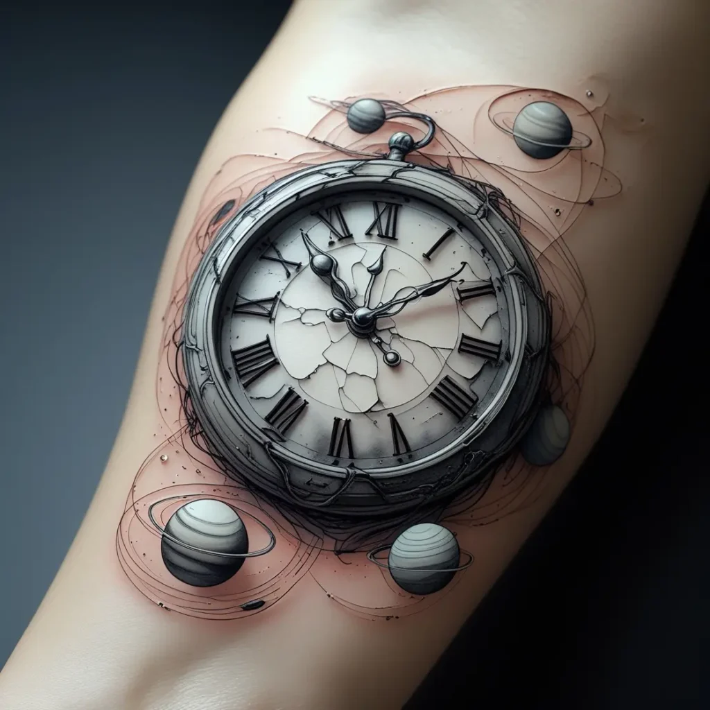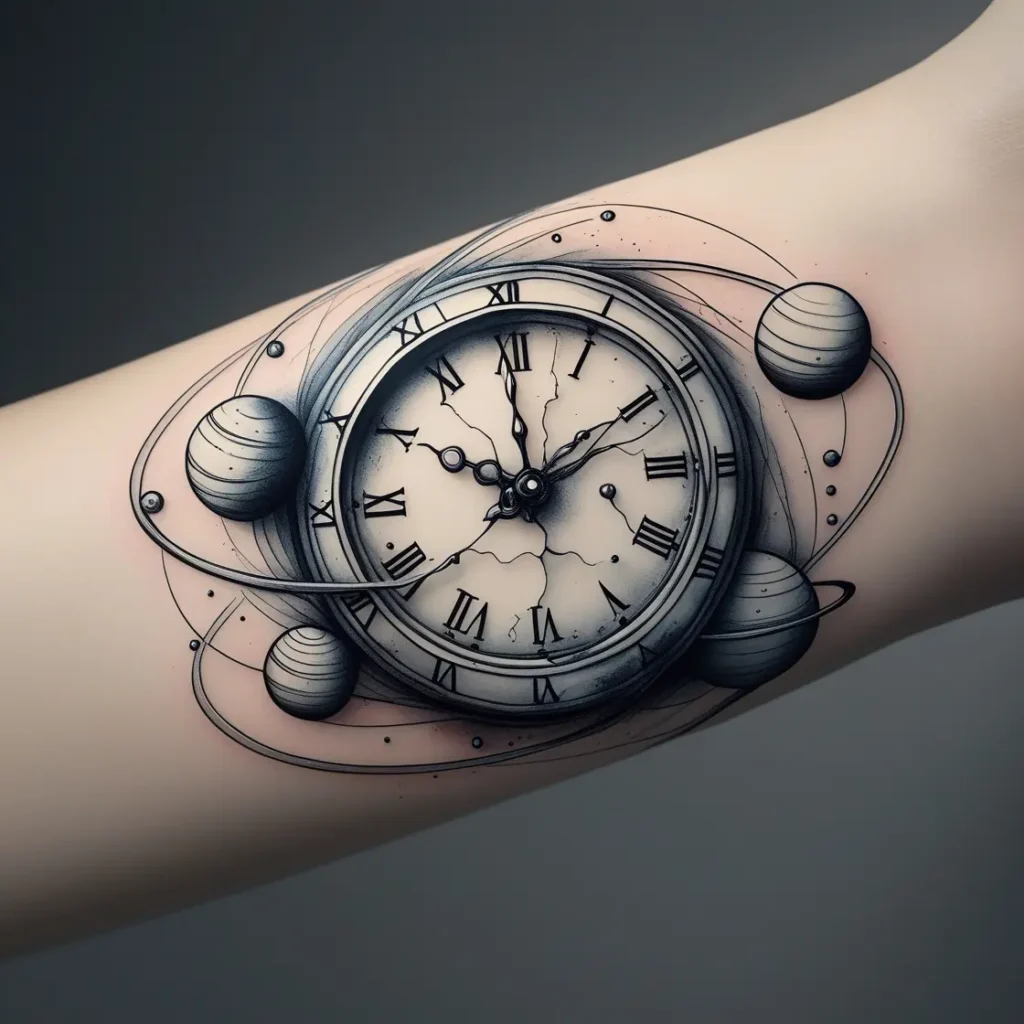 Tattoo Meaning: Represents the fluidity and perception of time, and how it’s not always linear or fixed. This tattoo embodies the science fiction concept of time bending in space.
