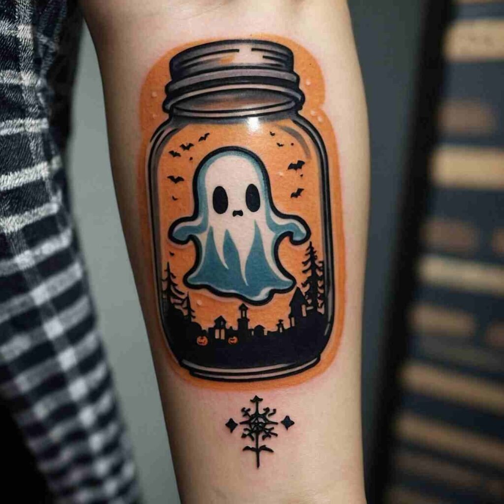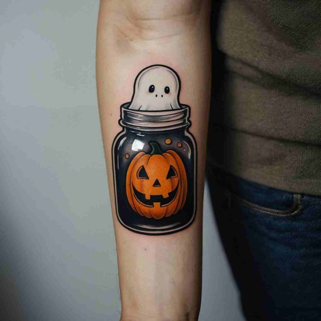 Ever thought of catching a ghost? Well, here’s your chance! The ghost in a jar tattoo is my new favorite. It’s quirky, fun, and totally Halloween.