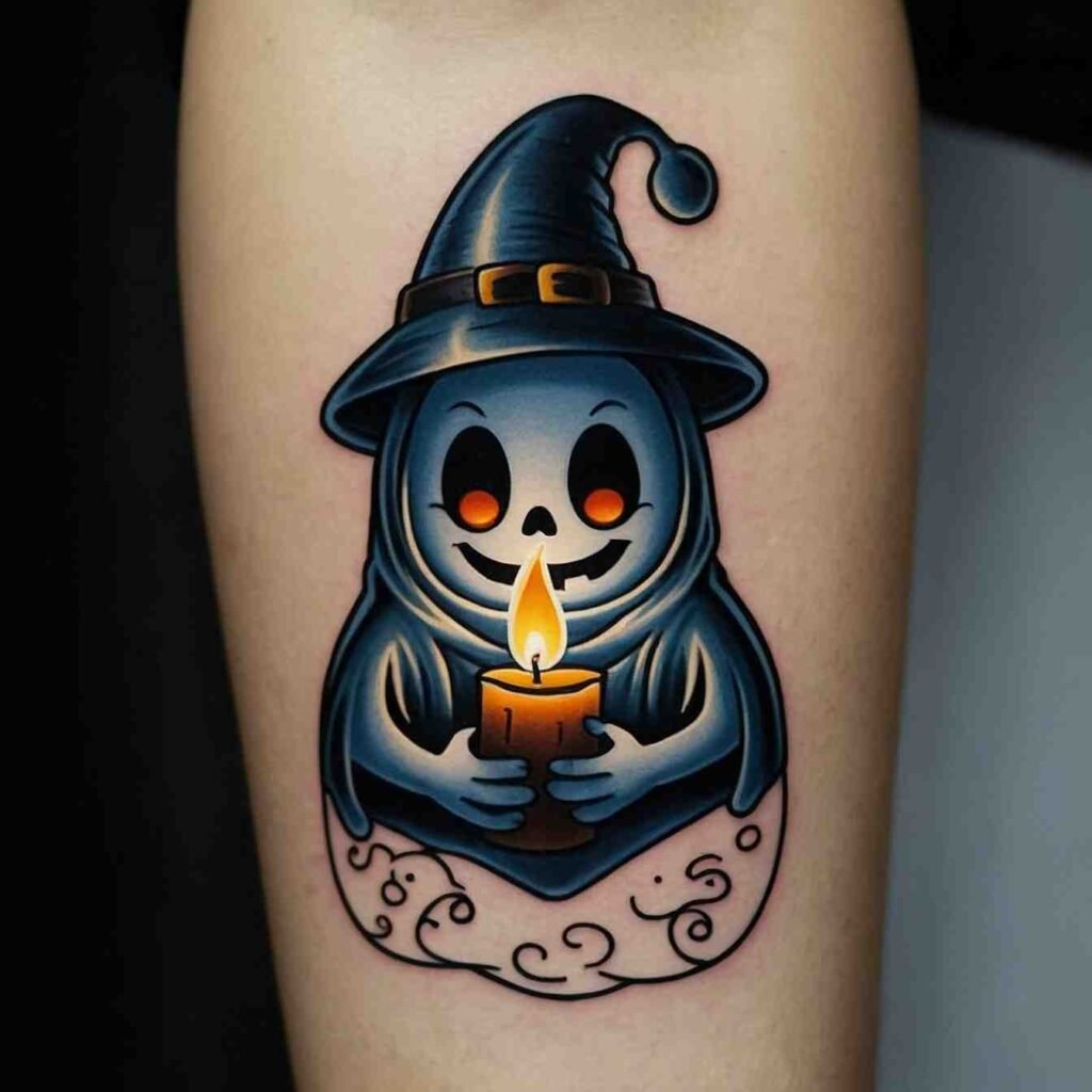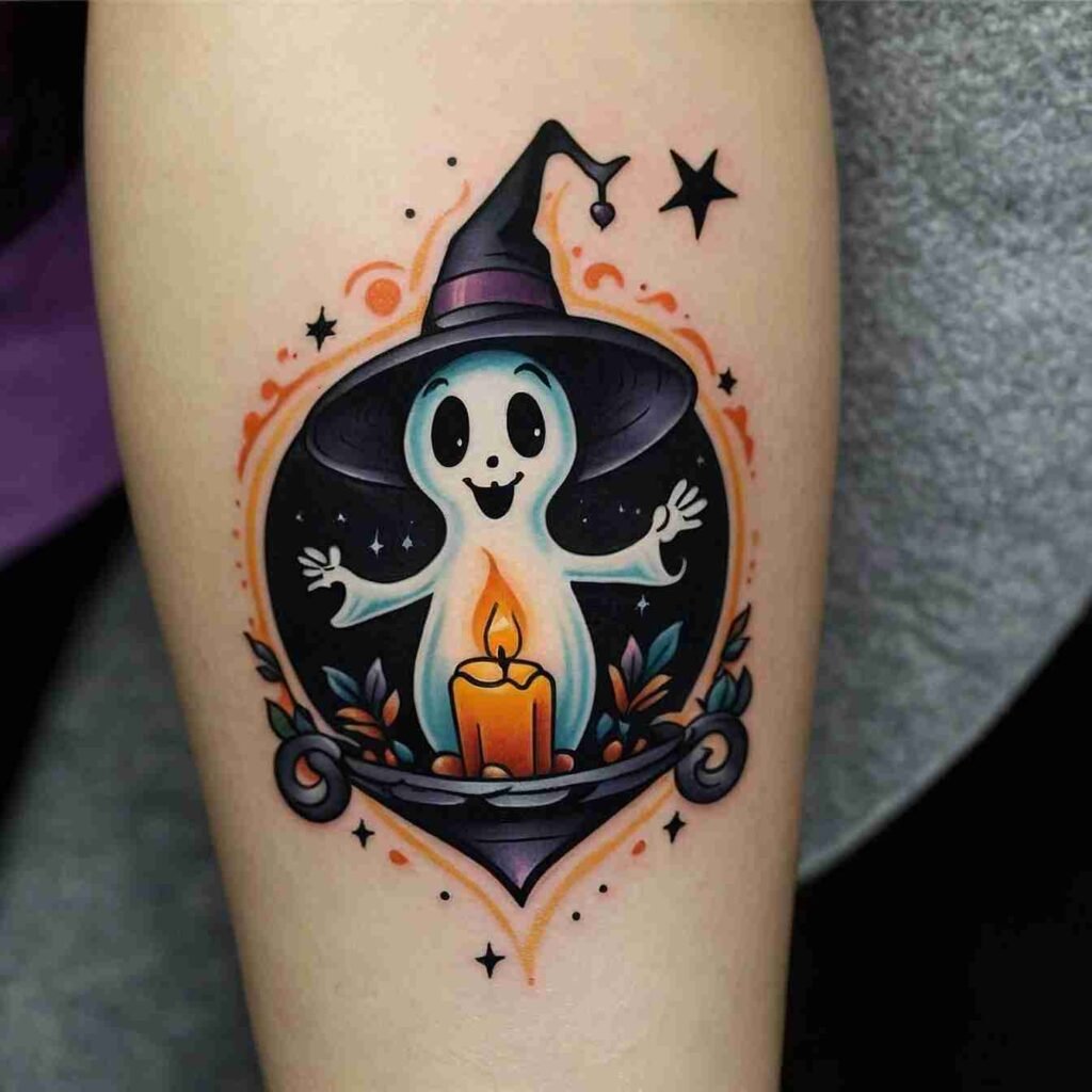Ghost in a Witch Hat Tattoo