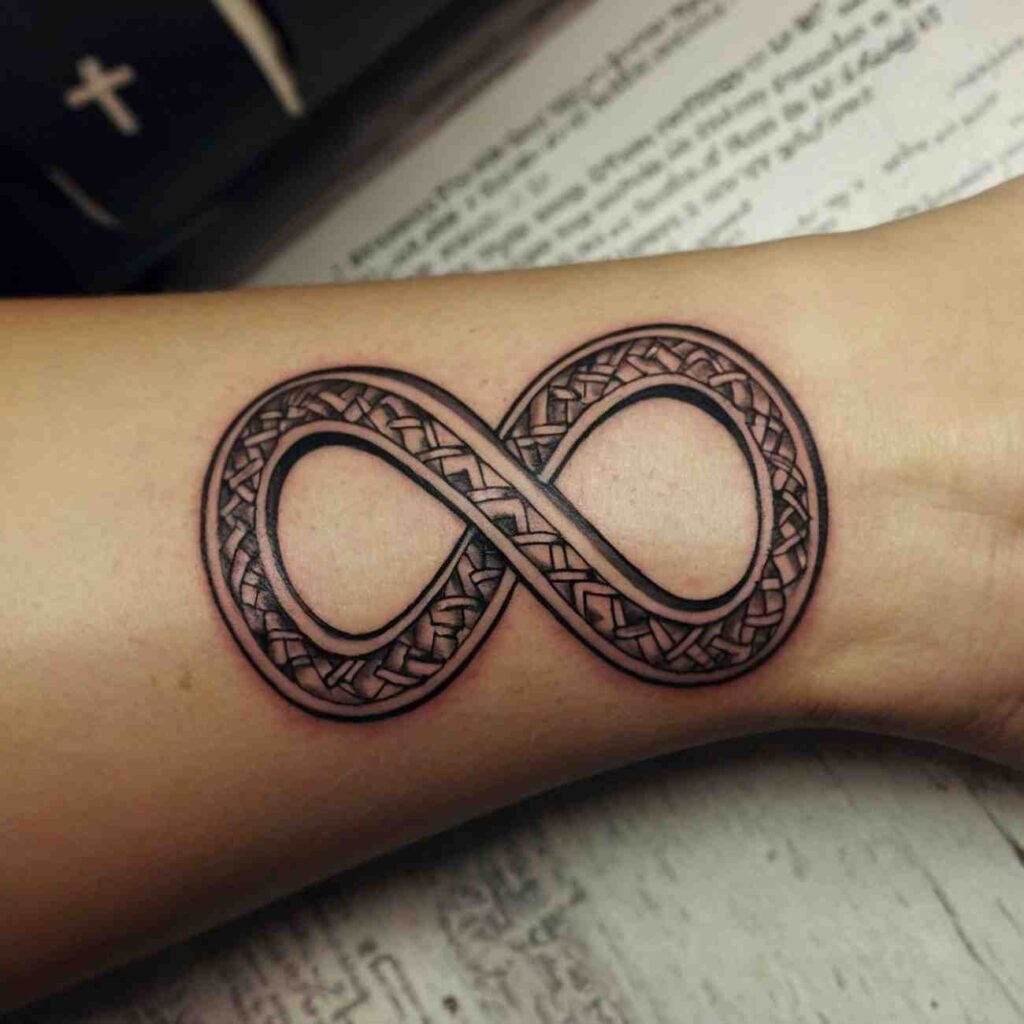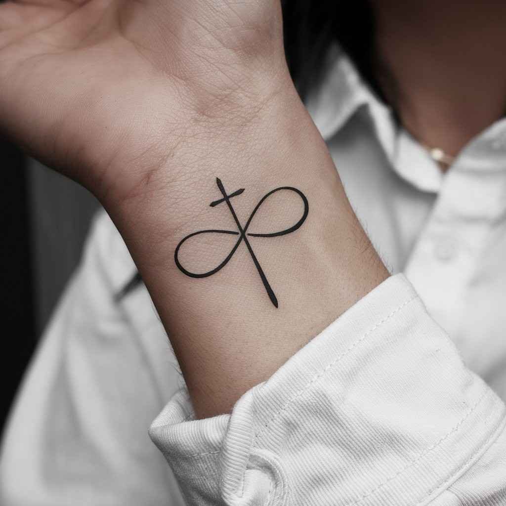 An infinity symbol intertwined with a cross represents eternal faith or endless love. This design is perfect for those who want to emphasize the everlasting nature of their beliefs or a deep, unbreakable bond.