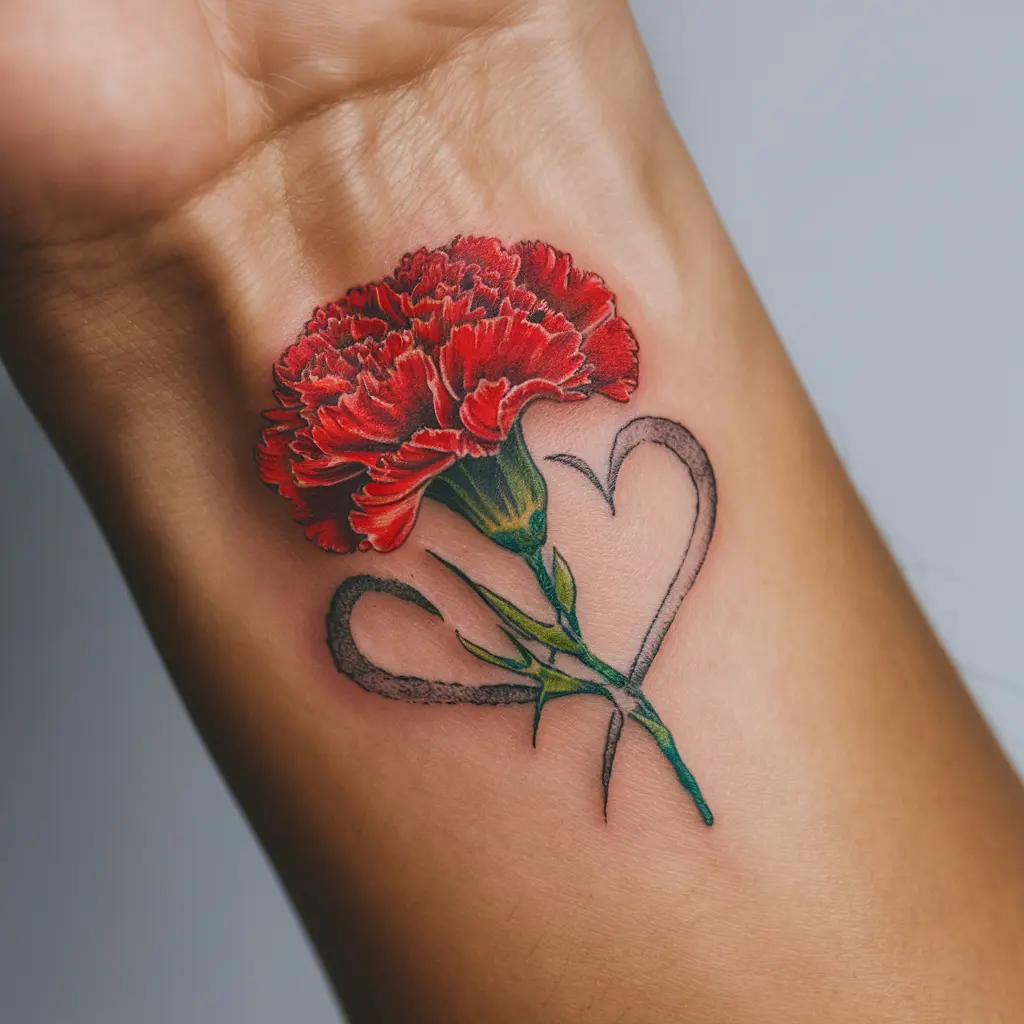 Tattoo Description: A single red carnation growing inside or intertwined with a heart.