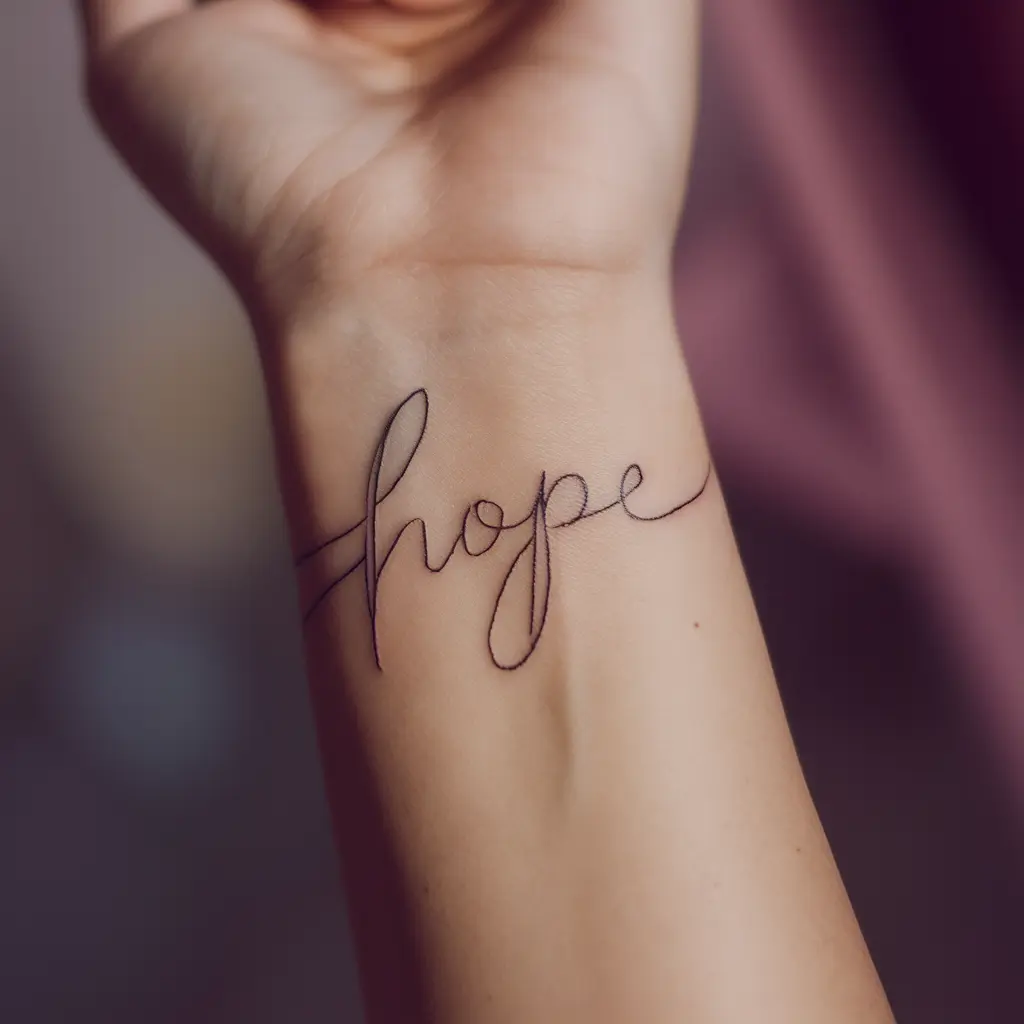 A meaningful word or short phrase can make a simple yet significant tattoo. Whether it’s a motivational word like “hope” or “strength,” or something more personal, it can be your own daily mantra.