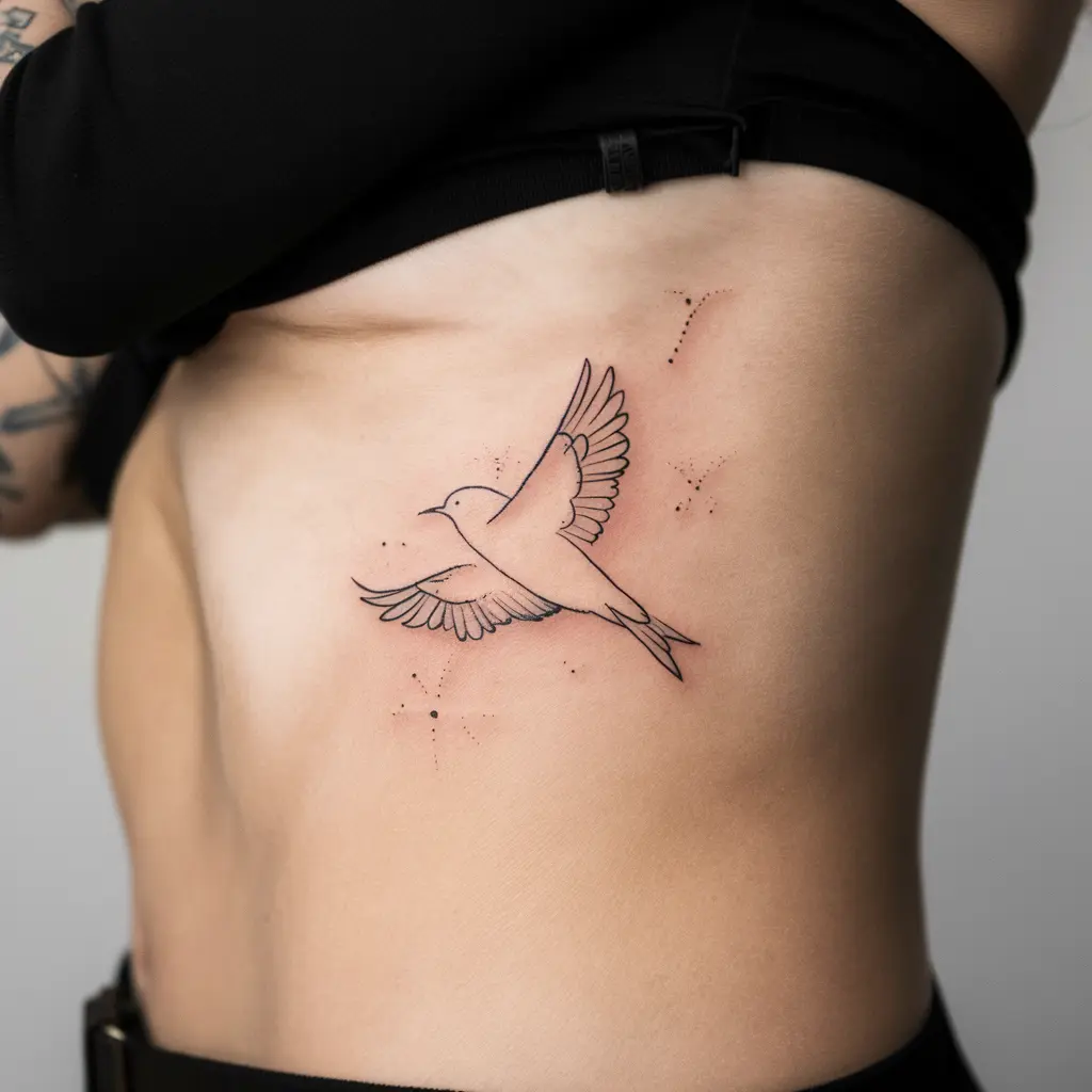 A bird tattoo often symbolizes freedom and growth. A small, delicate bird flying is a reminder of your own potential and the freedom to spread your wings.