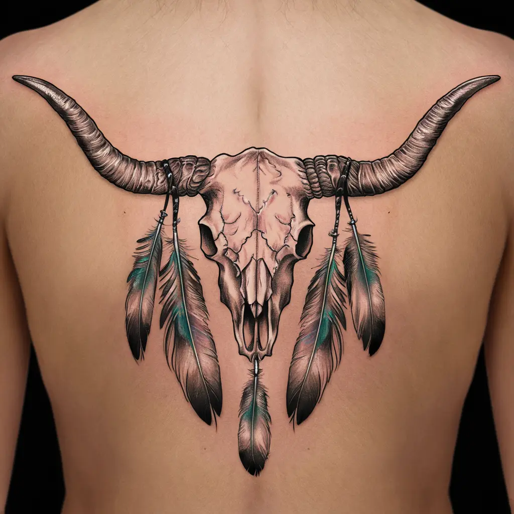 Incorporating feathers into the design adds a layer of symbolism, connecting the longhorn skull to Native American traditions. The feathers represent spirituality, wisdom, and freedom.