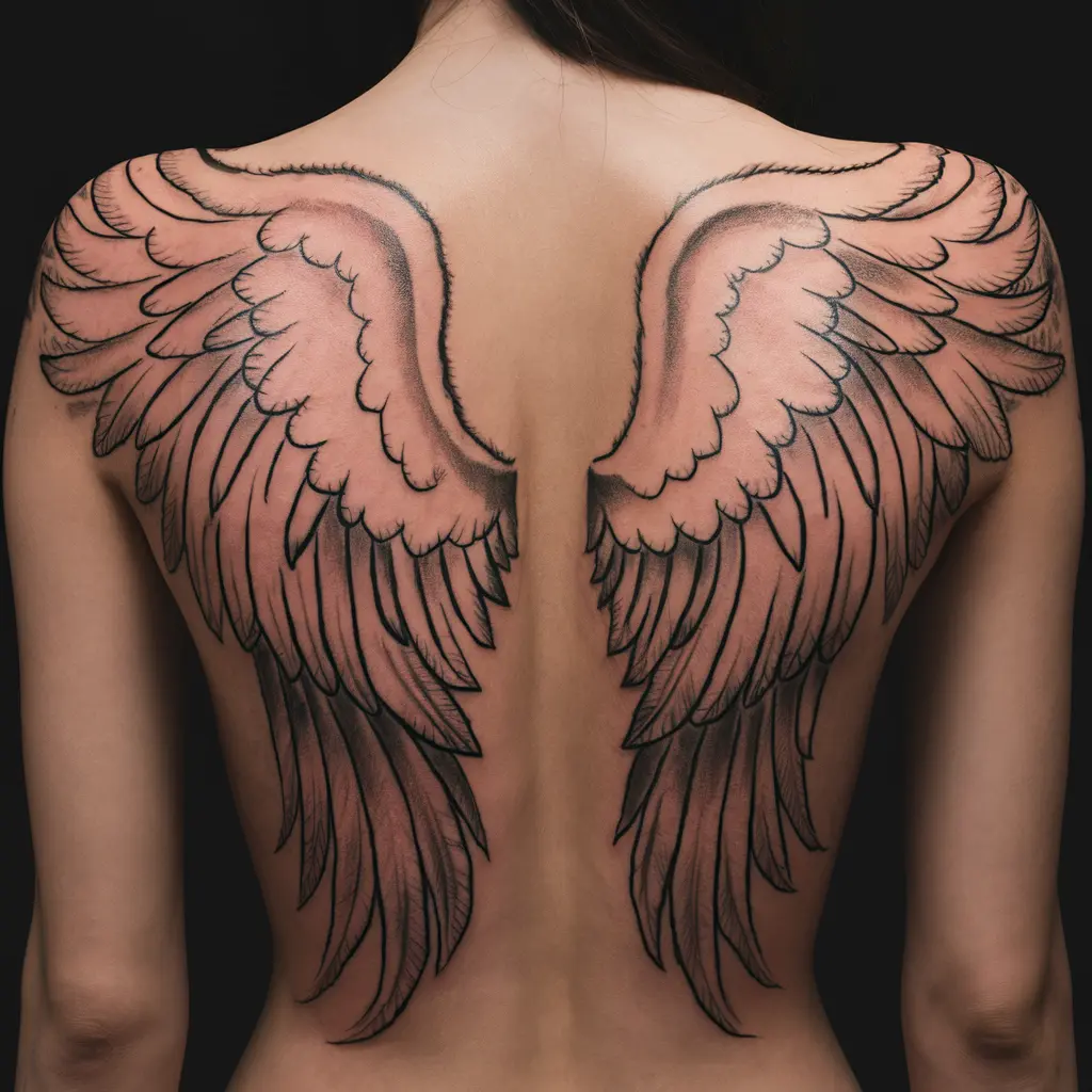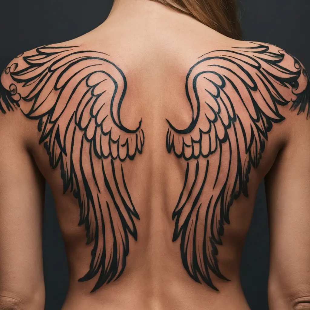 A simple yet elegant design, angel wings spread across your back. This tattoo symbolizes protection, guidance, and spirituality.