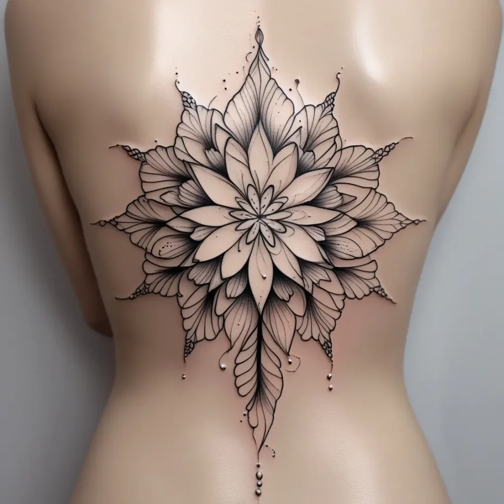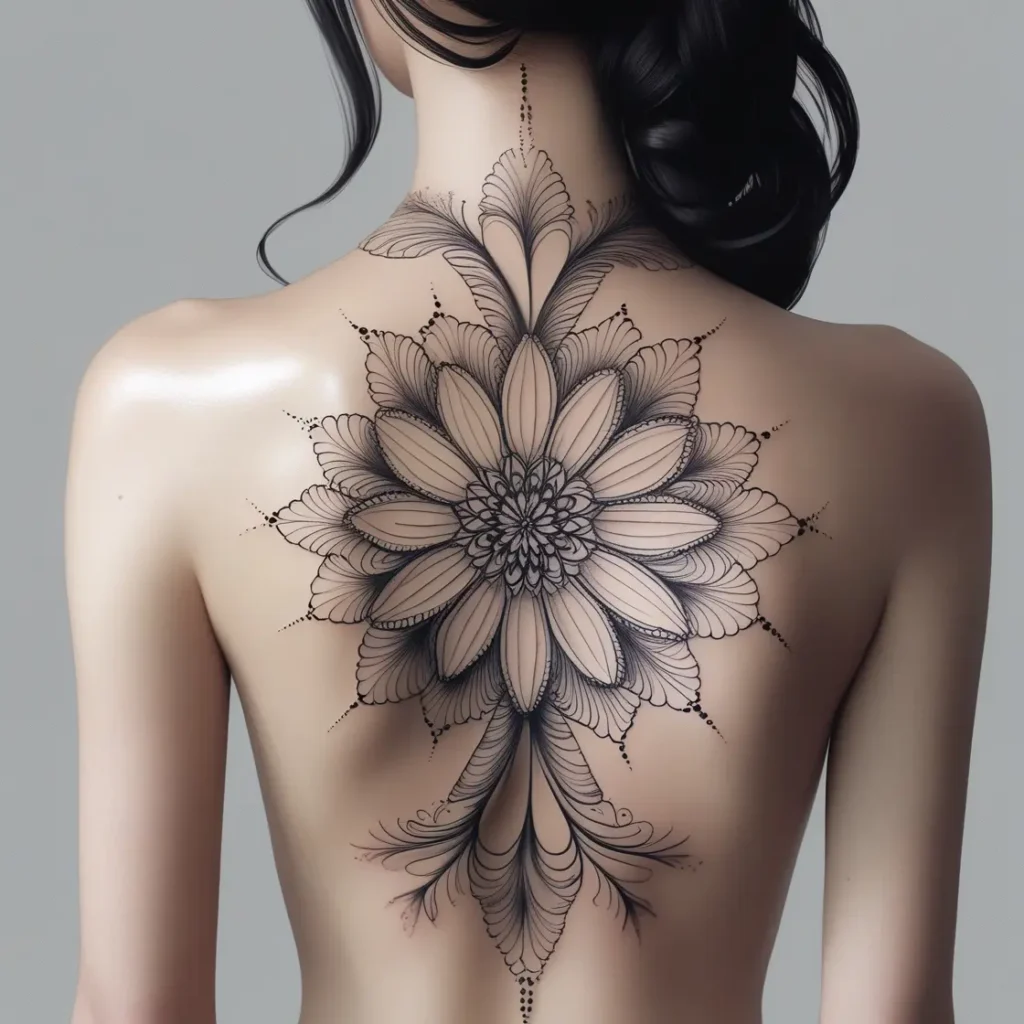 A floral mandala starting from your lower back and moving upwards creates a beautiful symmetrical design. I love the way mandalas represent unity and balance, and the addition of floral elements makes it even more feminine and soft.