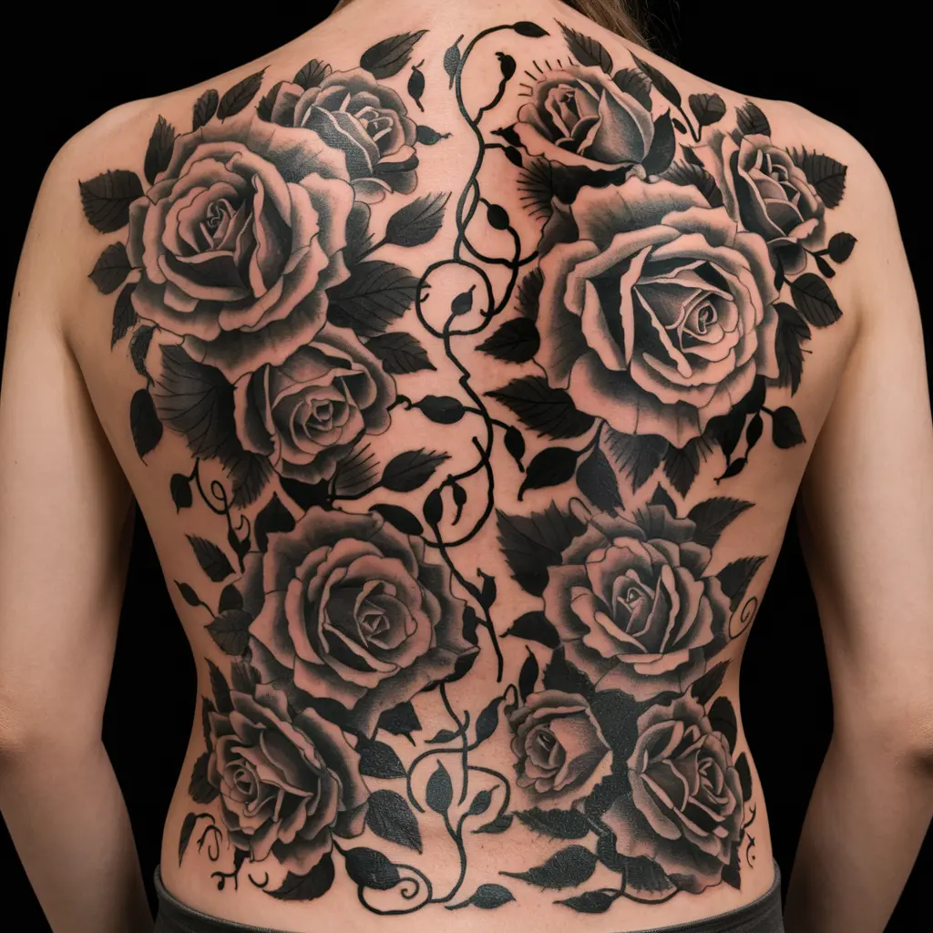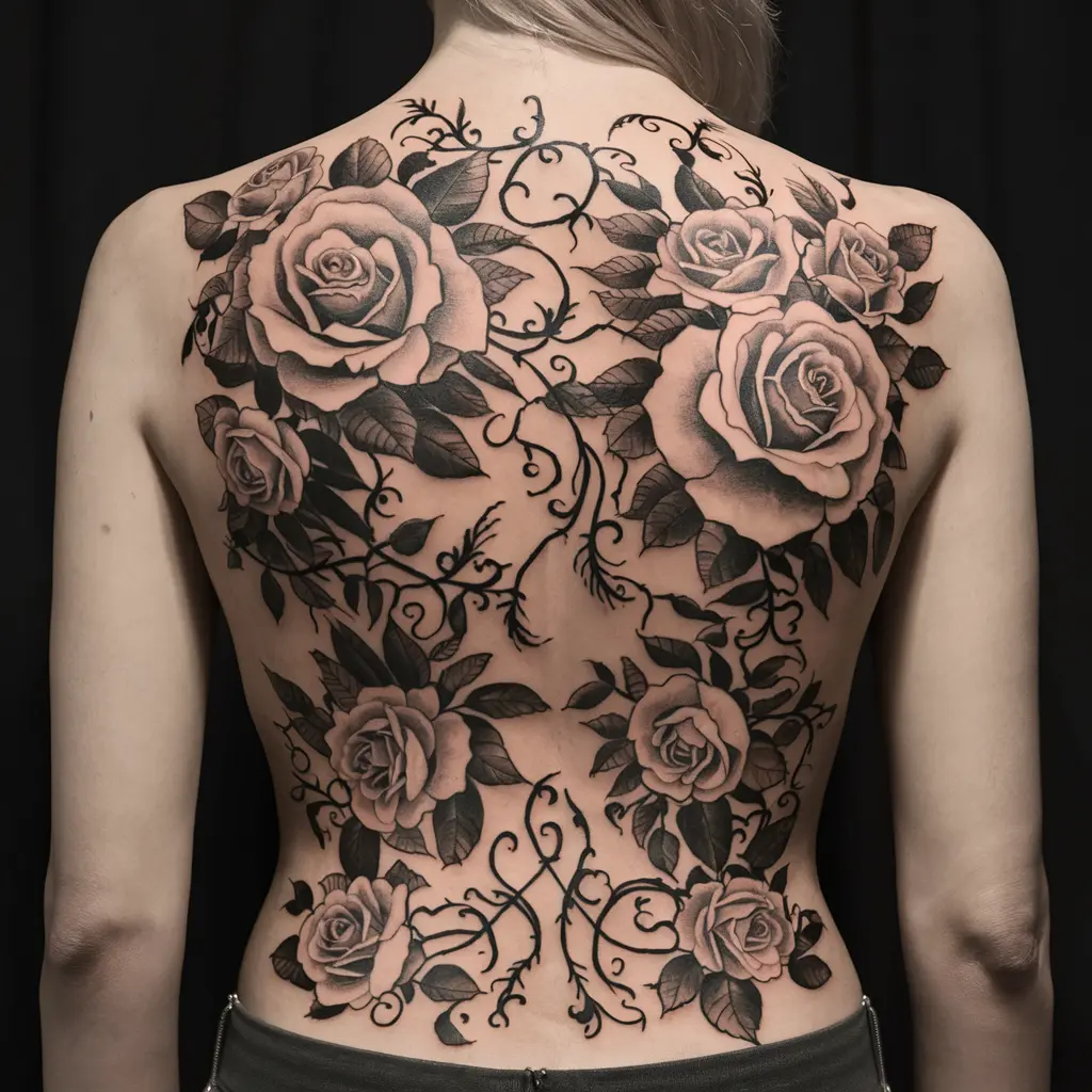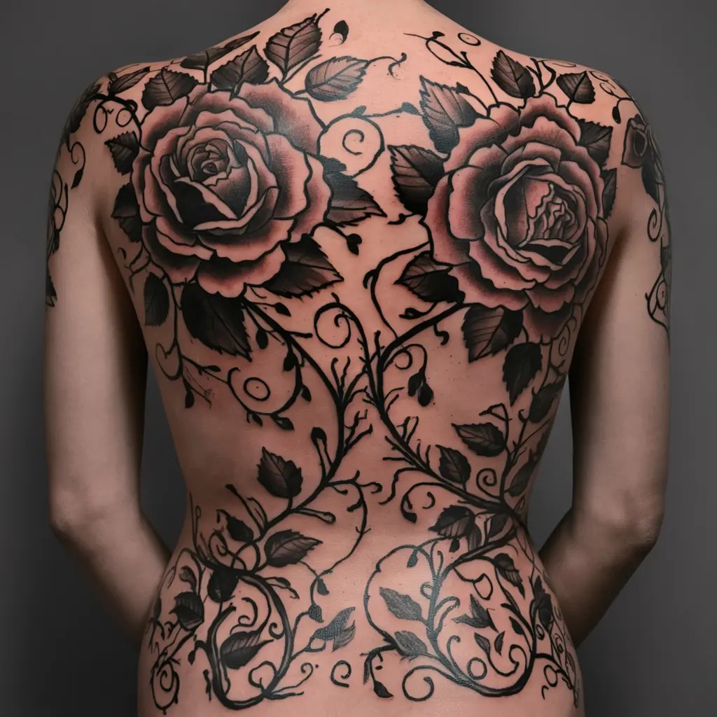 A full back covered in blooming roses is a timeless design. The flowers can be large or small, with vines wrapping around your body, giving the tattoo a soft yet dramatic presence.