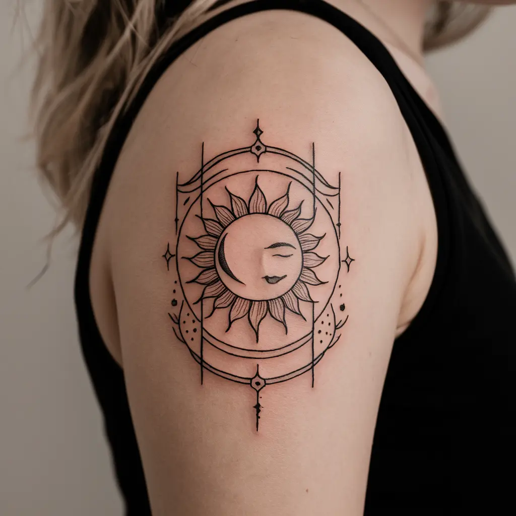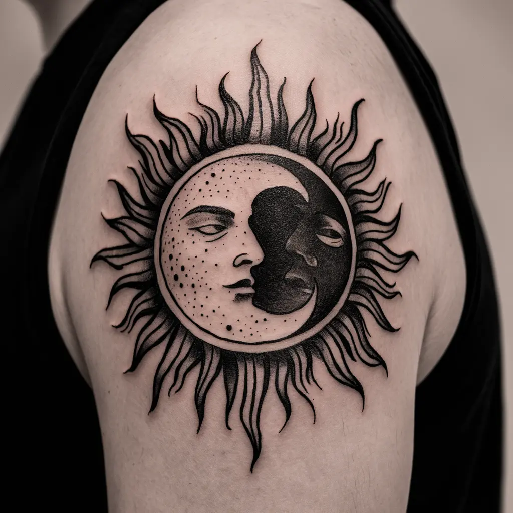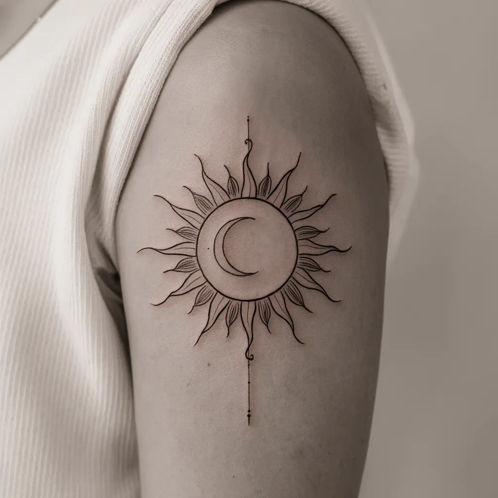 The eclipse tattoo symbolizes moments of clarity that come after periods of mental chaos. It represents how sometimes, after overthinking, we find peace and perspective.