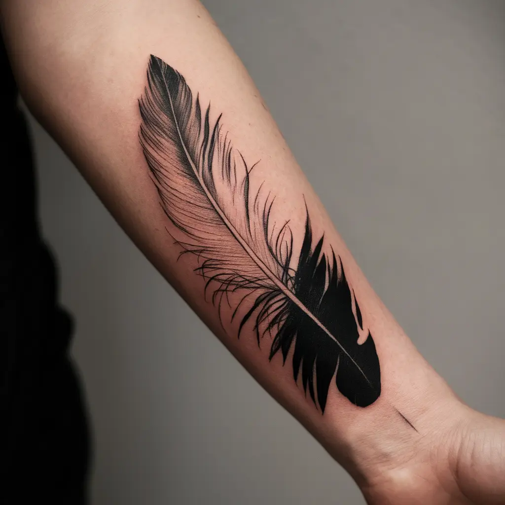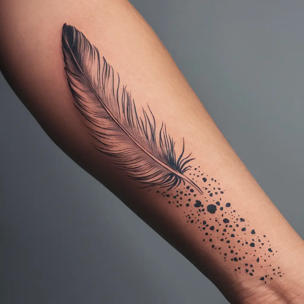 This tattoo starts as a delicate feather that gradually turns into ink, symbolizing how thoughts can transform into something more meaningful or creative. It’s perfect for an overthinker who likes to turn mental clutter into art.