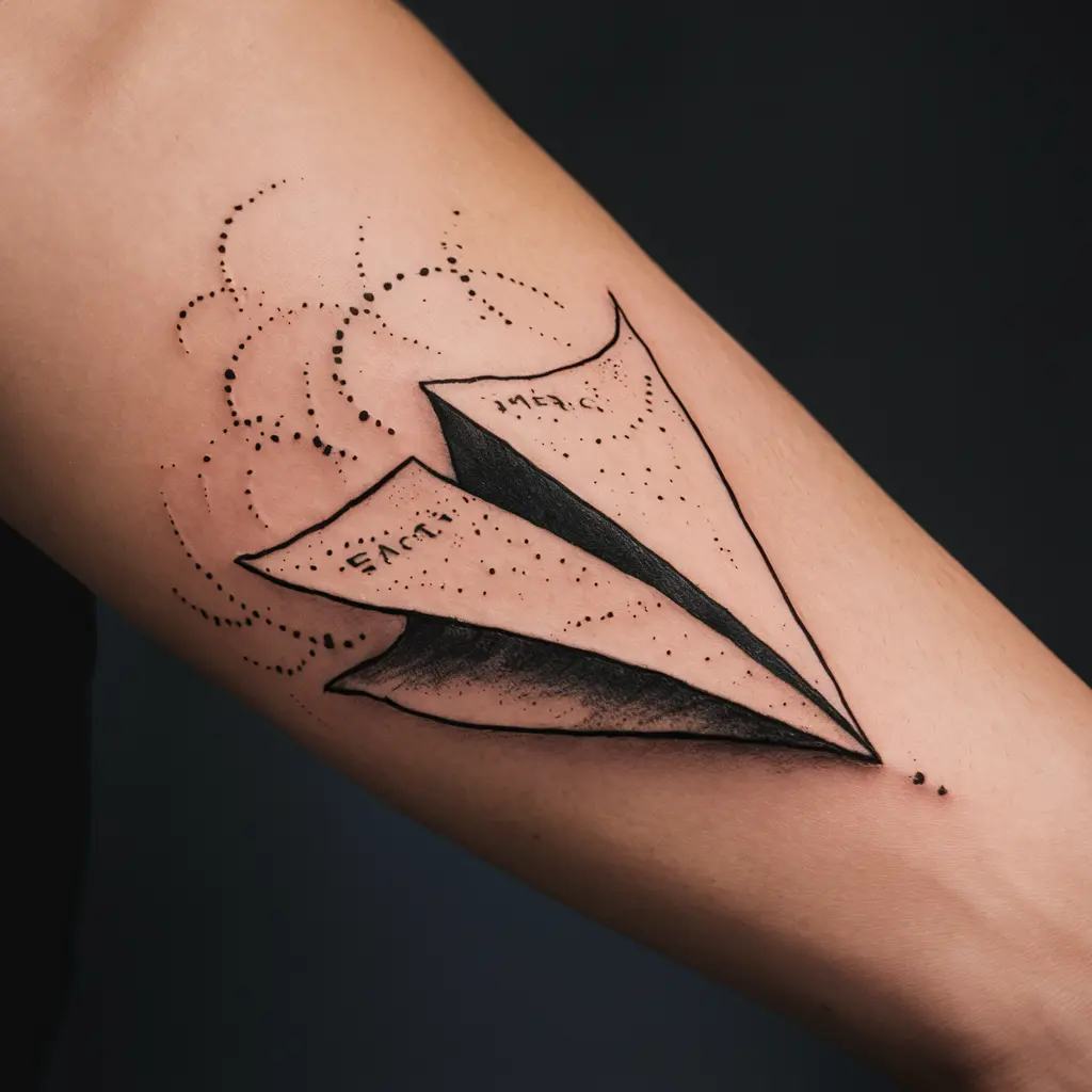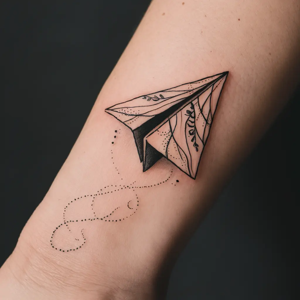 A paper airplane tattoo symbolizes how our thoughts take flight, often drifting in different directions. It’s a playful yet meaningful way to show how overthinkers are always mentally “on the move.”