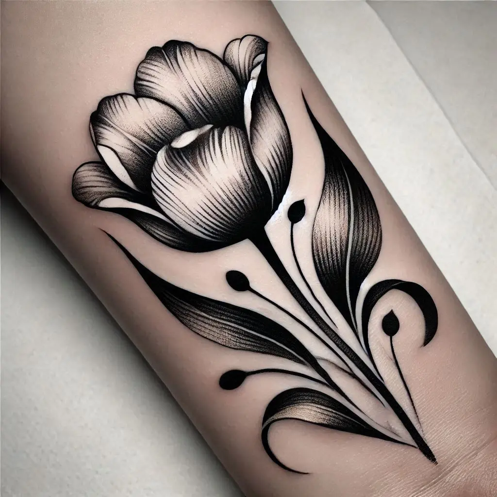 A single tulip tattoo reminds me of my grandmother’s garden, where we’d spend countless afternoons together. This design is perfect for anyone who connects flowers with fond memories.