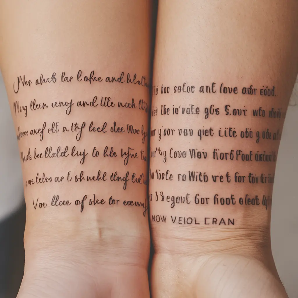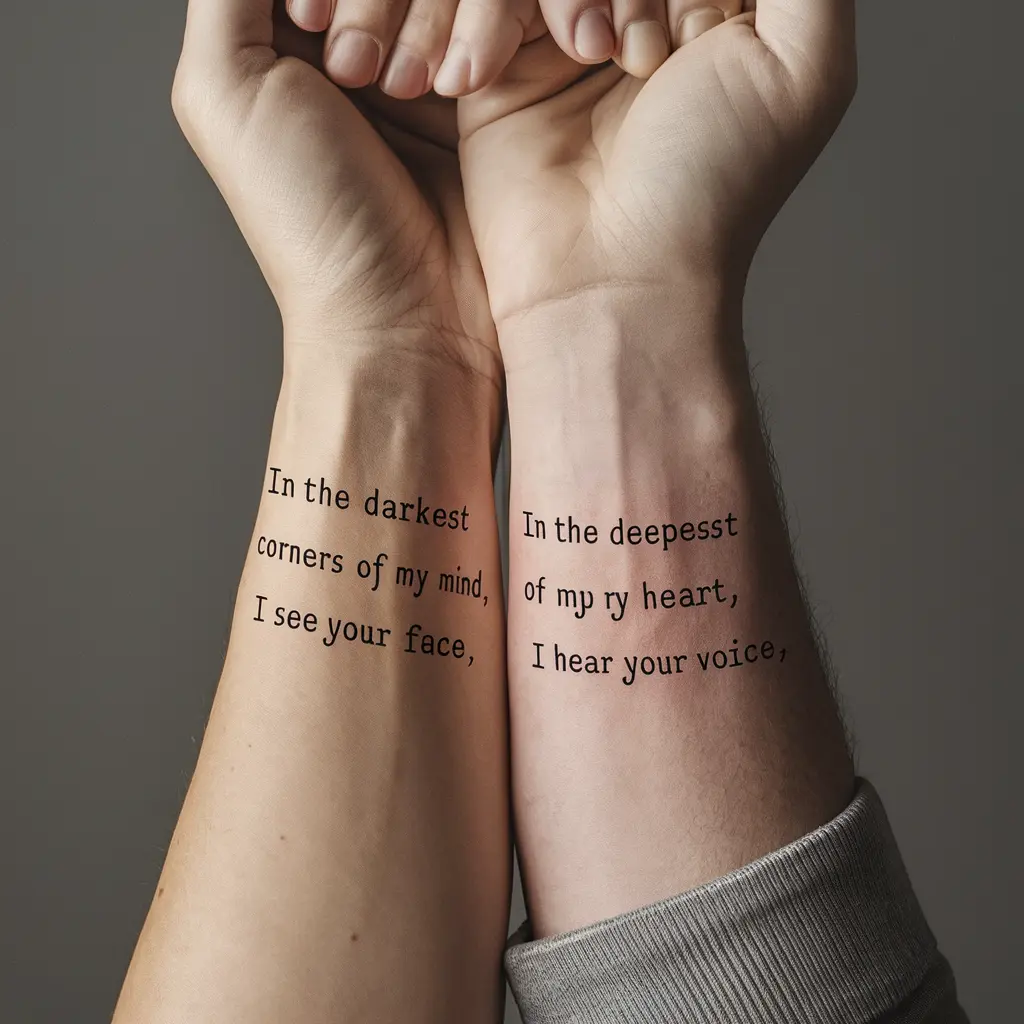 Tattoo Meaning: Quotes can express love, growth, or inside jokes that represent your bond.