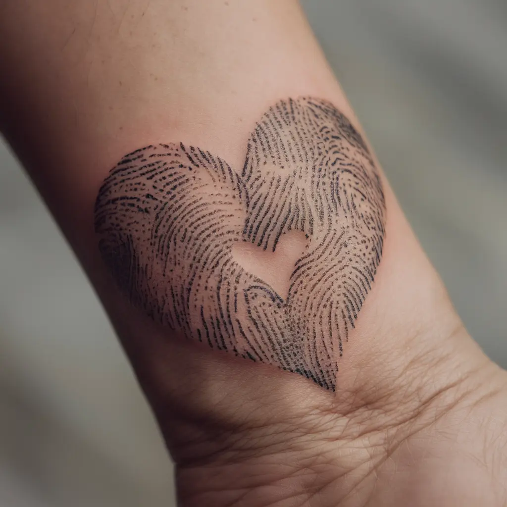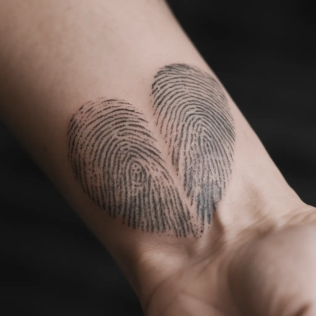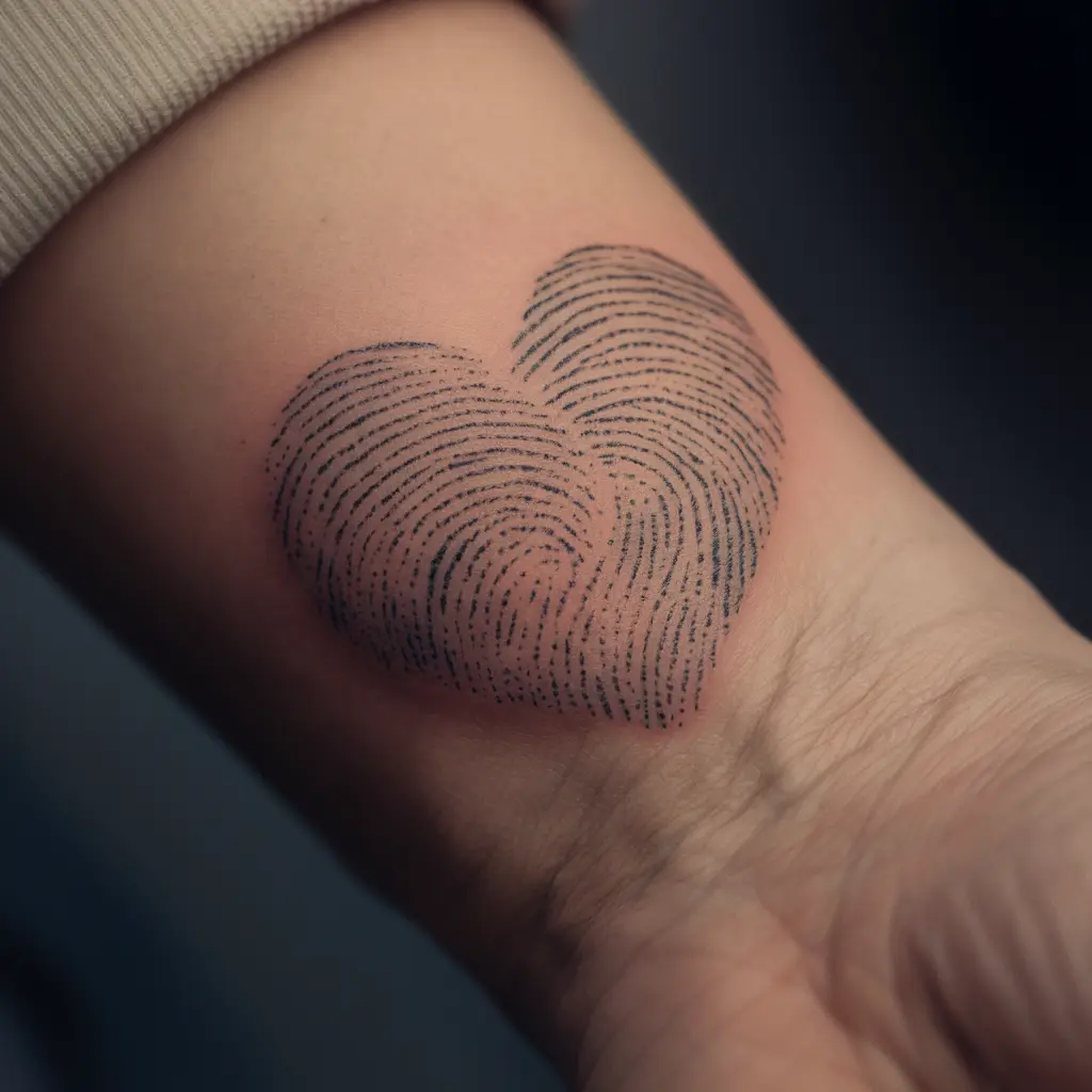 Tattoo Meaning: Fingerprints symbolize identity and uniqueness. A fingerprint heart expresses the one-of-a-kind bond you share.