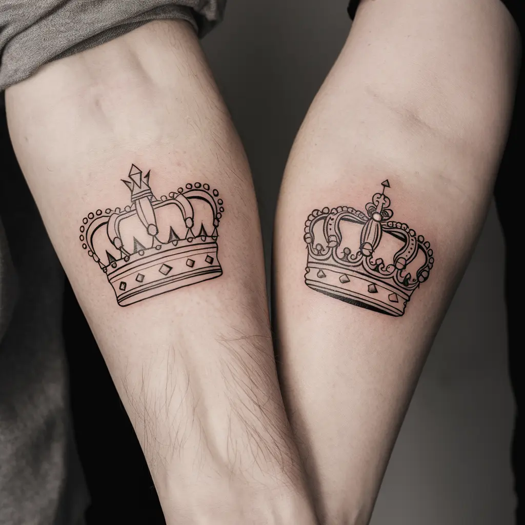 Tattoo Meaning: Crowns symbolize power, respect, and authority. This tattoo expresses that you treat each other like royalty in your relationship.