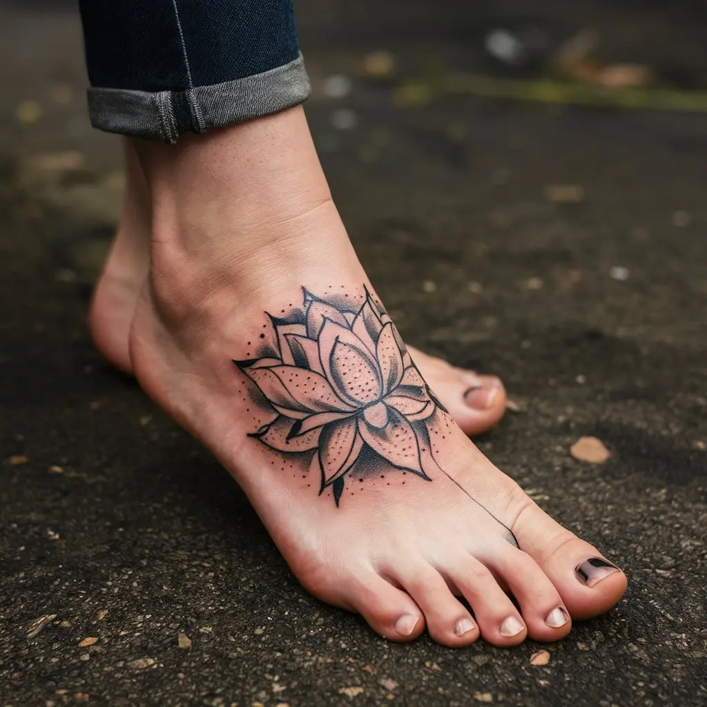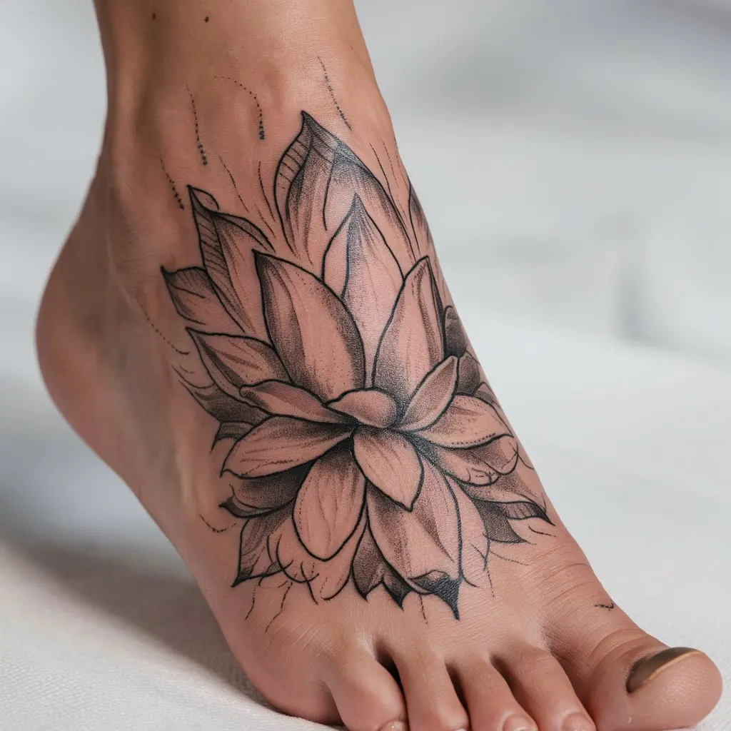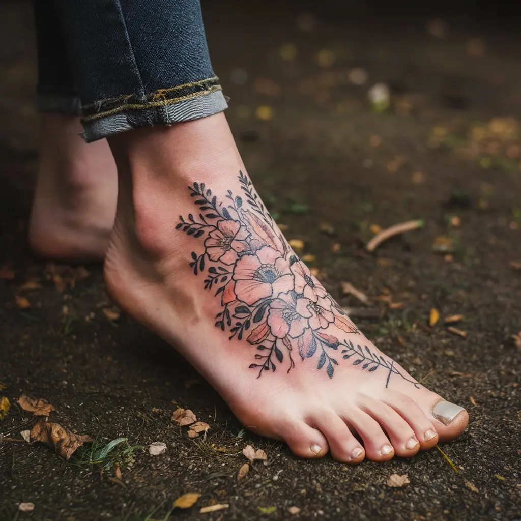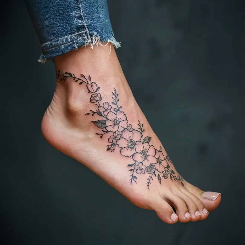 Floral tattoos are timeless and incredibly versatile, making them a favorite for foot placements. Common choices include roses, lotuses, and vines, each carrying a deep symbolism.