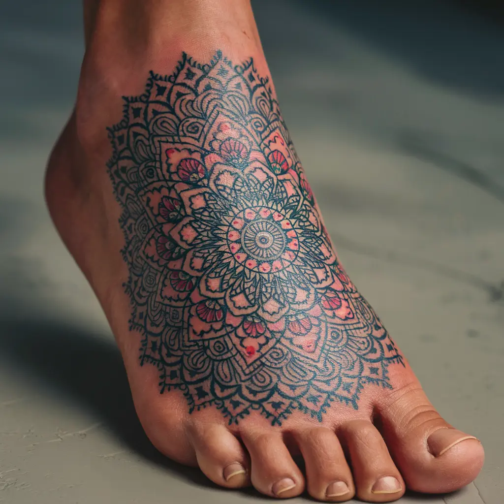 Mandala: Mandalas are circular designs symbolizing wholeness, balance, and the universe. A mandala foot tattoo can be seen as a reflection of one’s journey to inner harmony and balance.