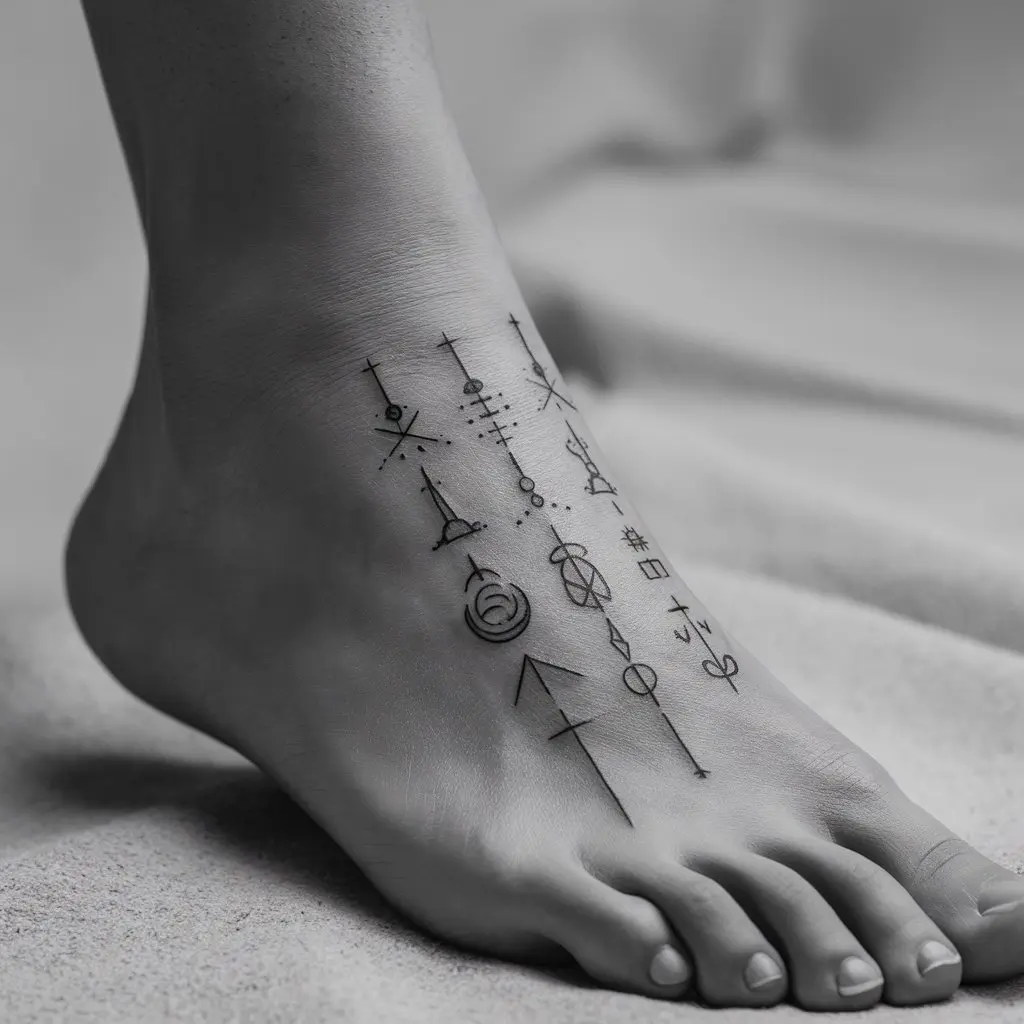 Minimalist tattoos are sleek and modern, often created with clean lines and simple shapes. Geometric designs add structure and symmetry, which can be especially eye-catching on the foot.