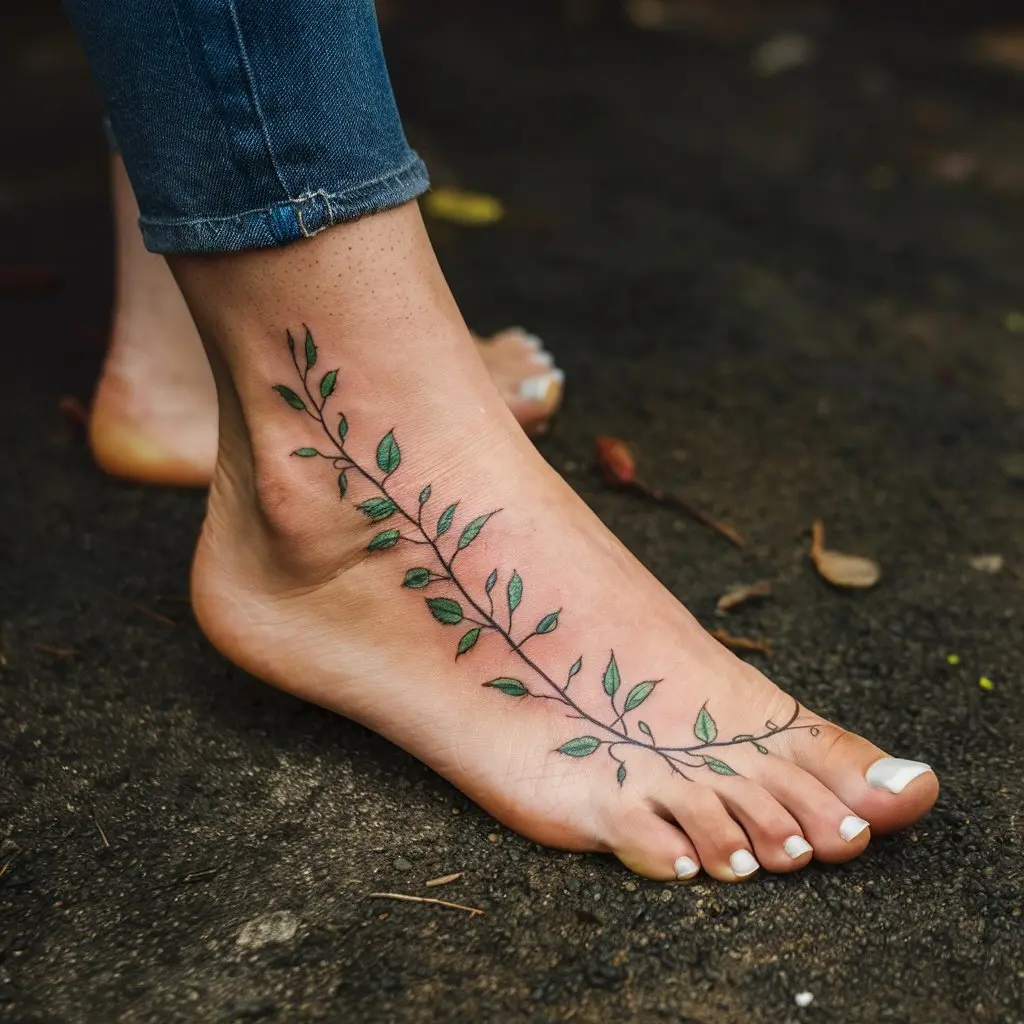 Vines: Vines can symbolize perseverance and adaptability. When designed to wrap along the foot, they create a beautiful flow that follows the foot’s natural lines, symbolizing continuous growth and the ability to overcome obstacles.