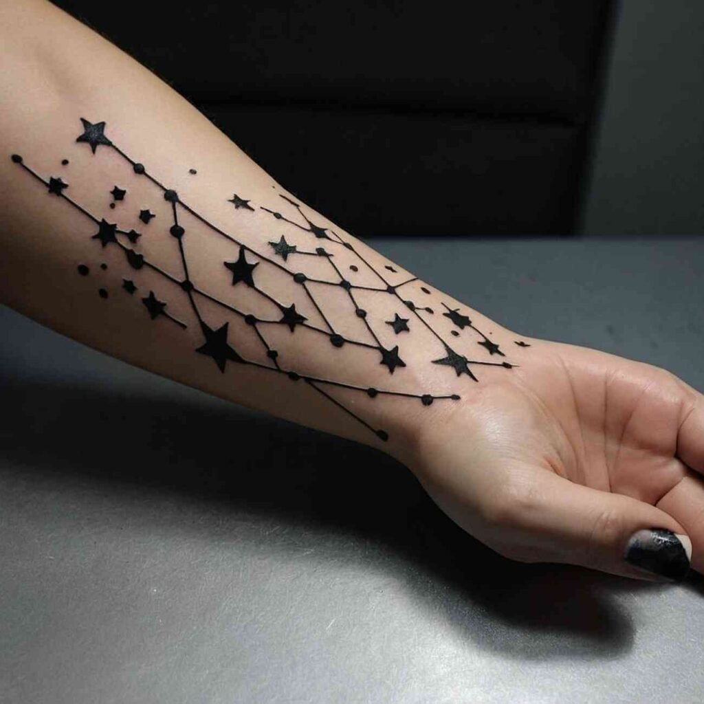 Stars: Stars are often seen as symbols of hope, guidance, and the strength to navigate through dark times. A tattoo of a constellation or a single star can be a reminder of one’s inner light and resilience.