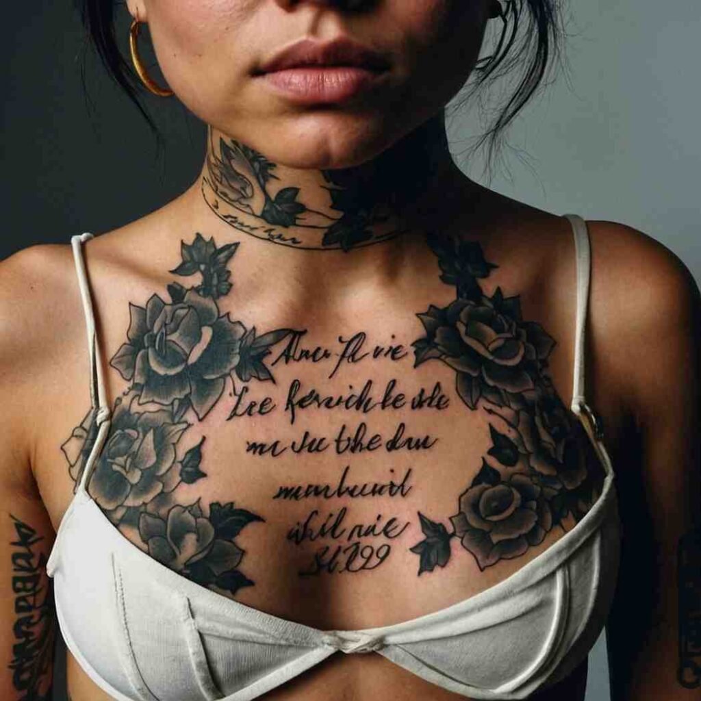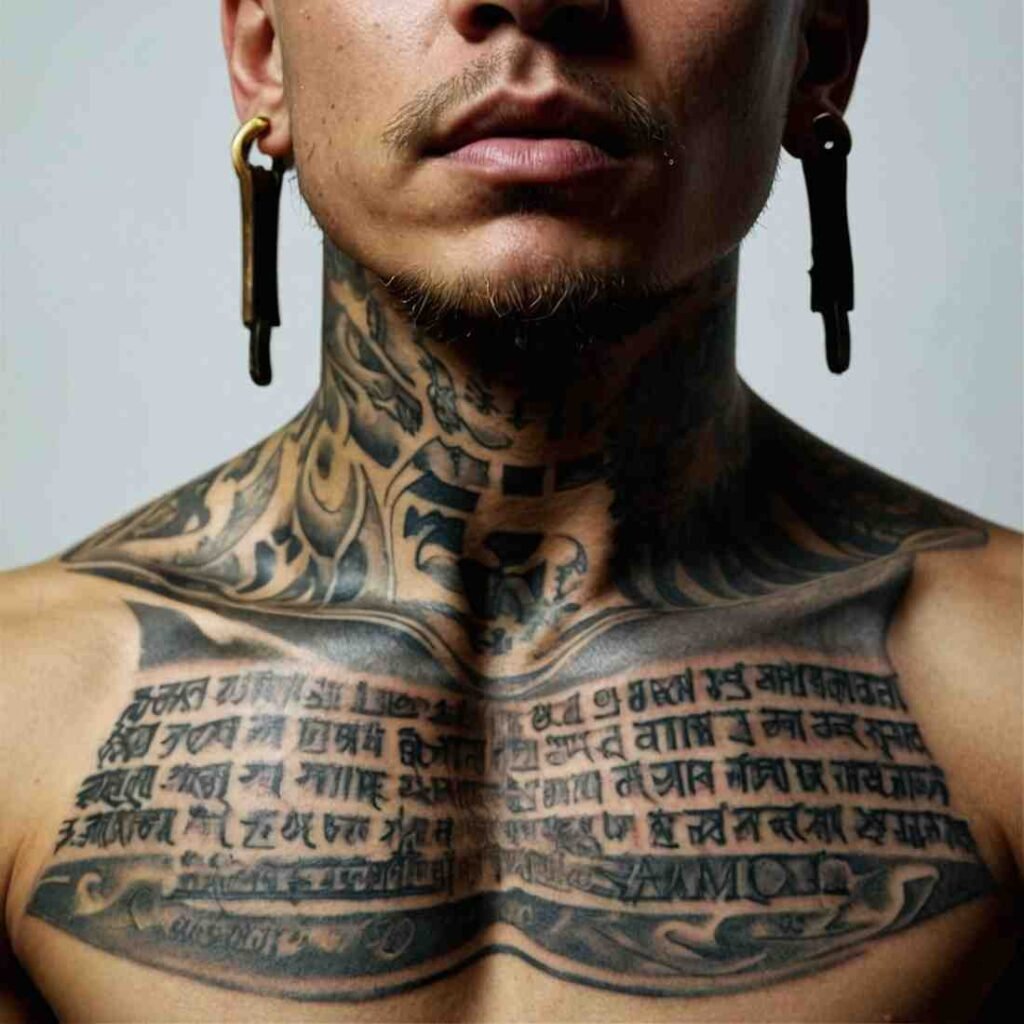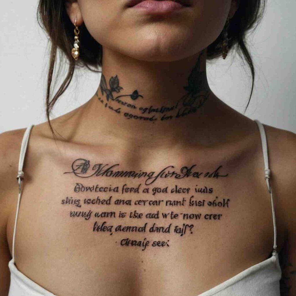 Some people choose to ink meaningful words or quotes across their chest or neck. Whether it’s a personal mantra or a significant phrase, it serves as a constant reminder of personal beliefs or goals.