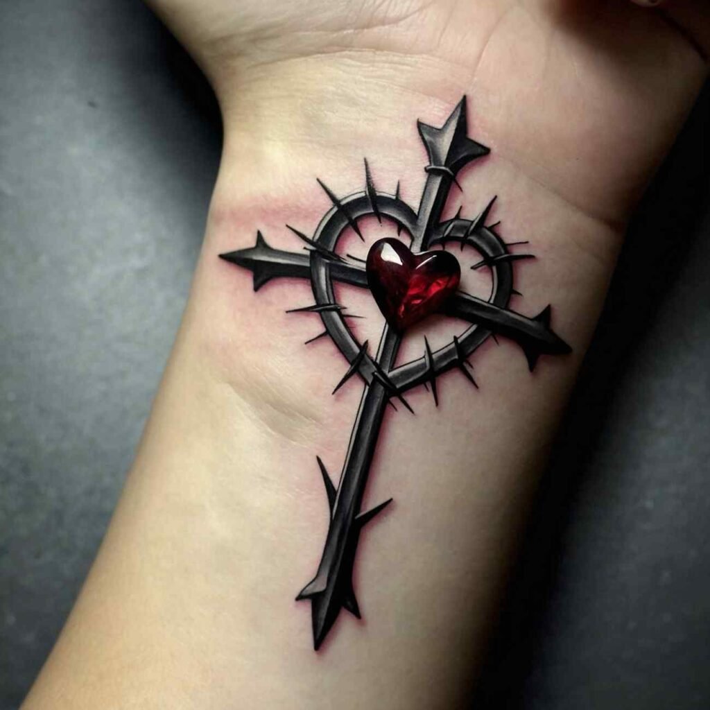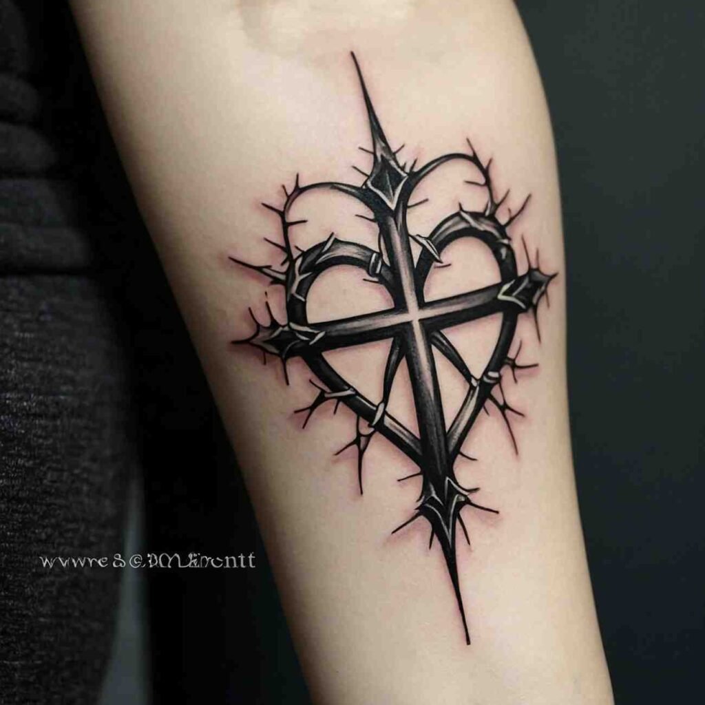 - Description: A heart with a cross at its center, wrapped in a crown of thorns.