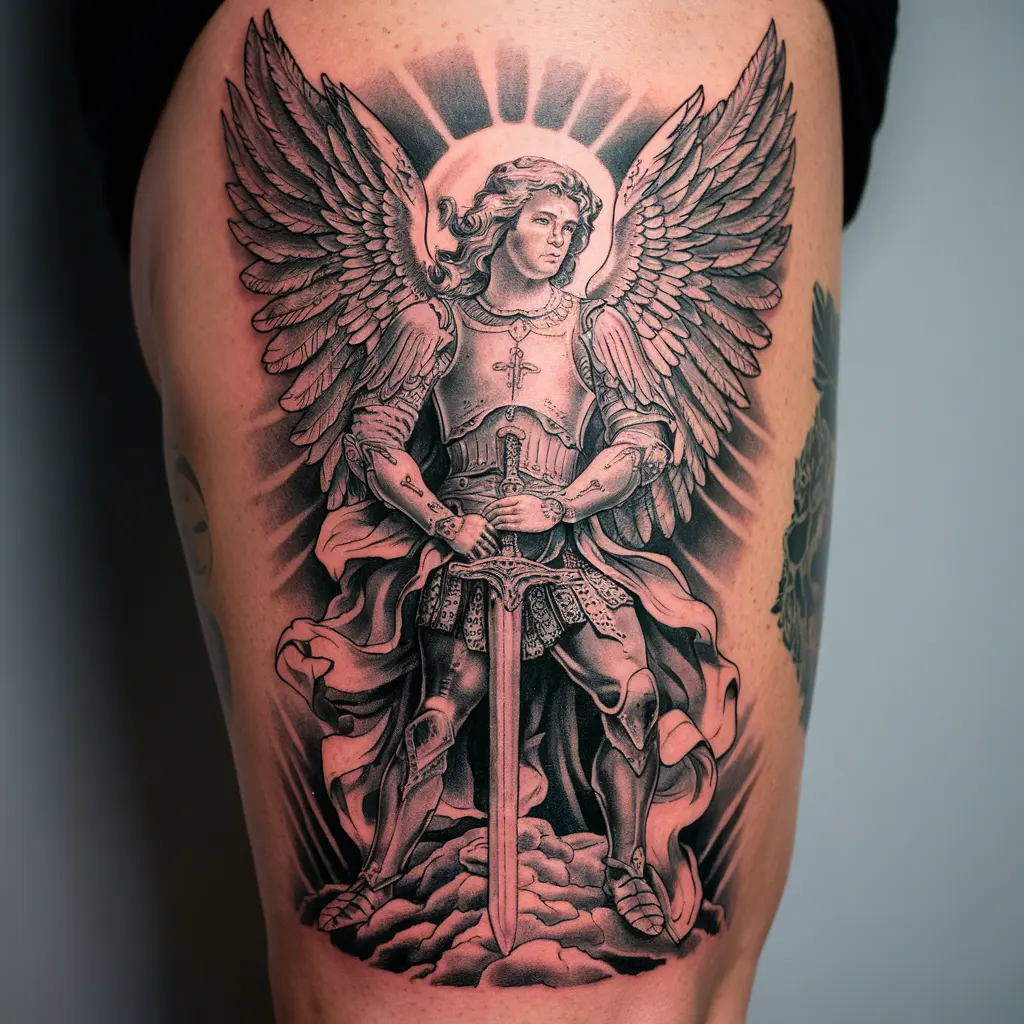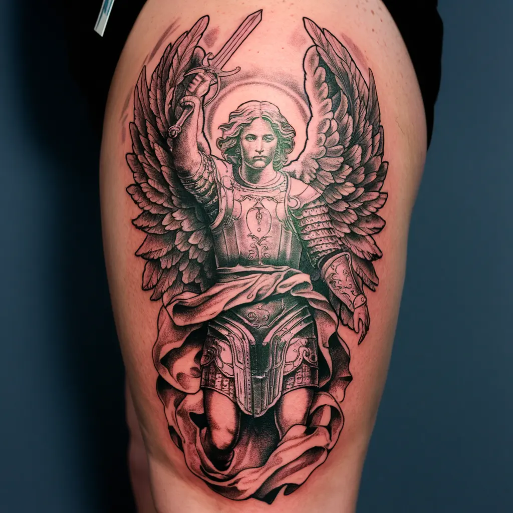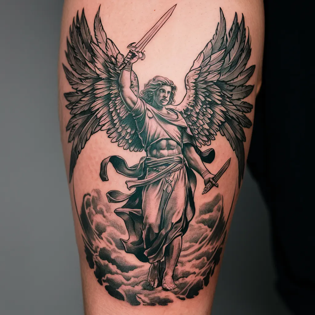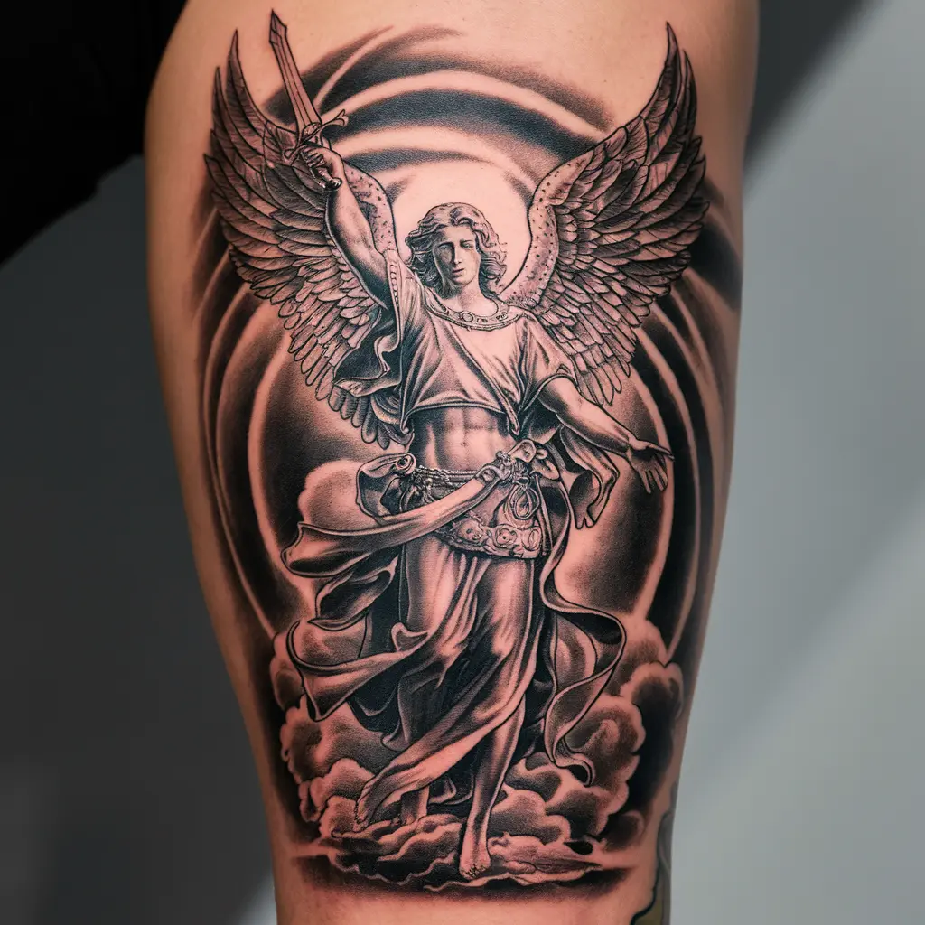 an Archangel Michael tattoo is a powerful symbol of strength, protection, and divine guidance.
