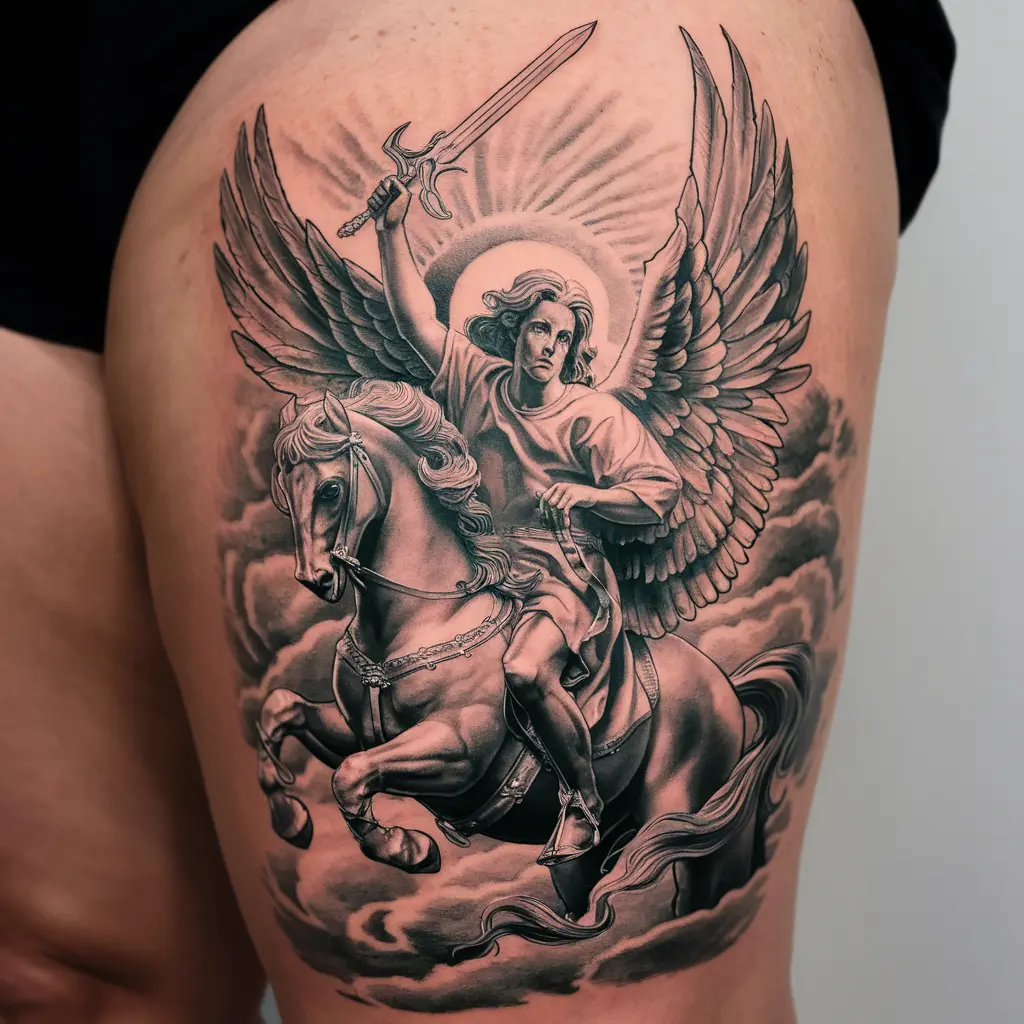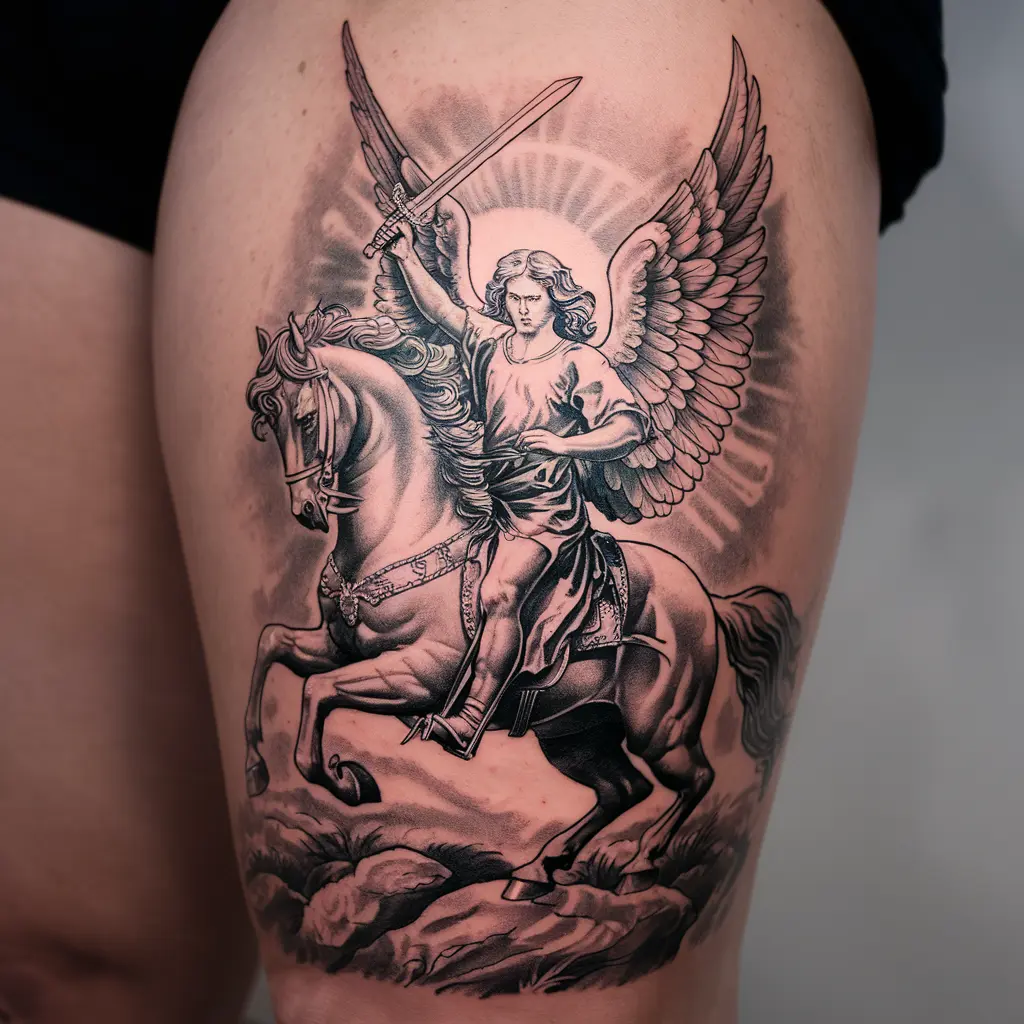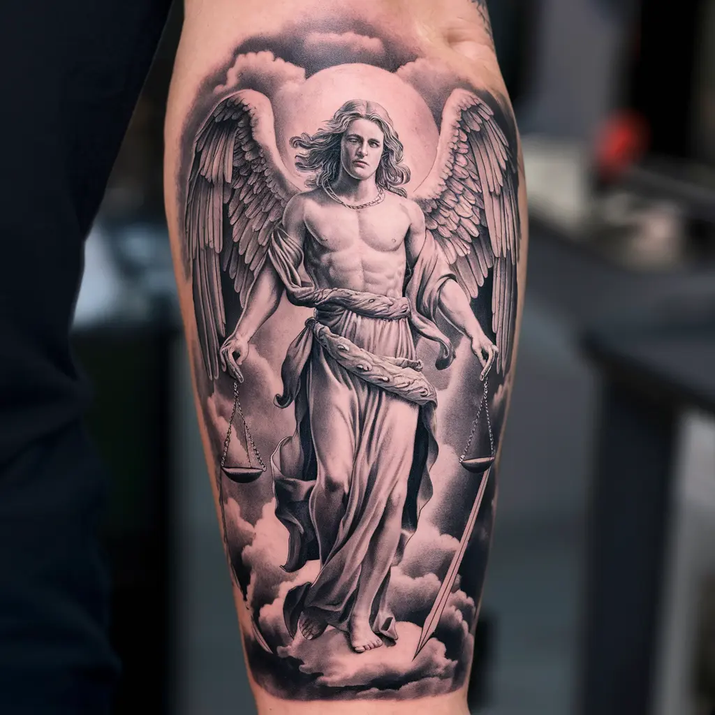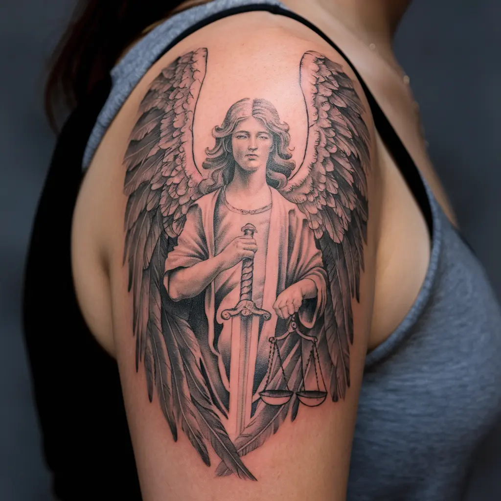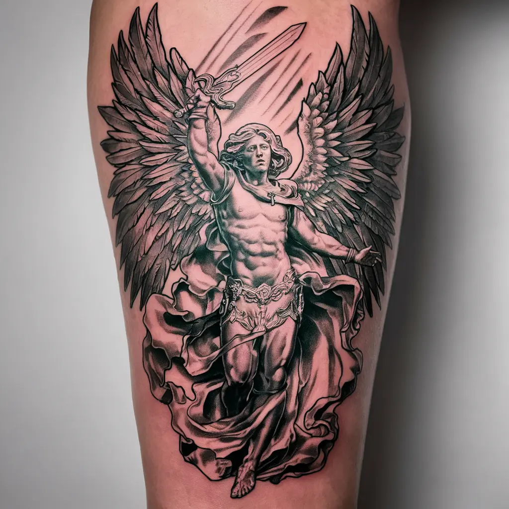 an Archangel Michael tattoo is a powerful symbol of strength, protection, and divine guidance.