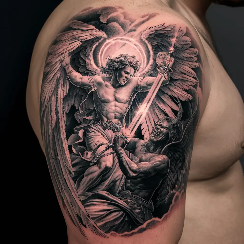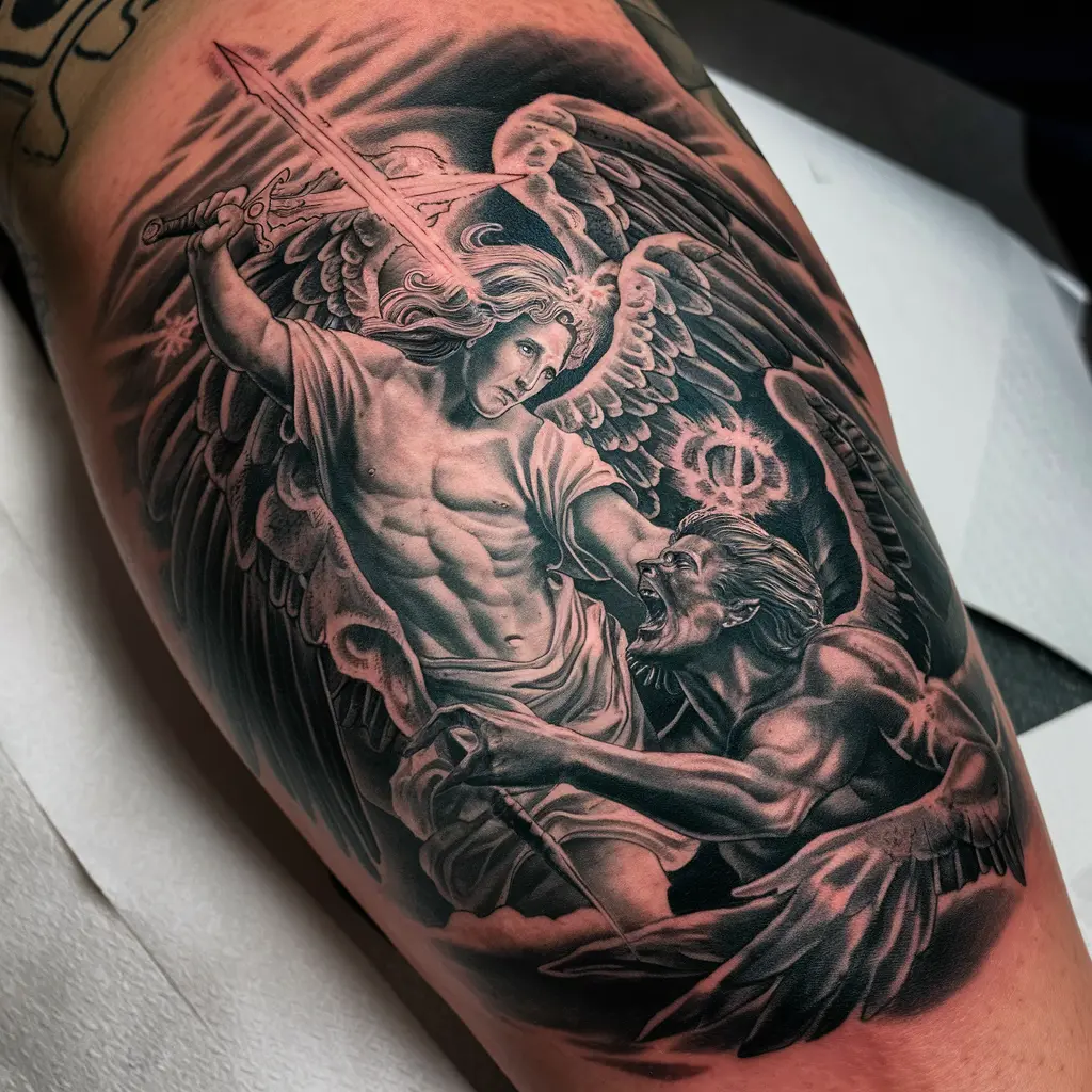 Whether you prefer a traditional angelic depiction, a dramatic battle scene, or a minimalist symbolic approach, there are countless ways to honor this celestial warrior in ink.