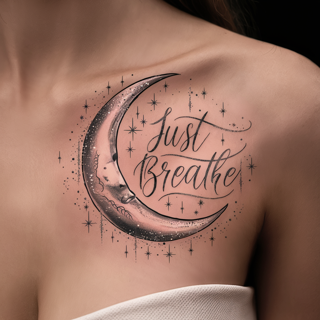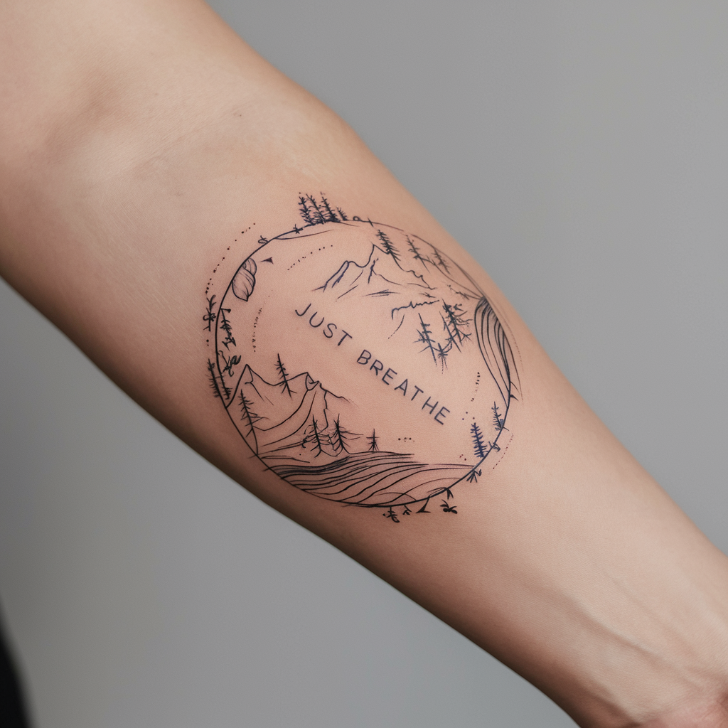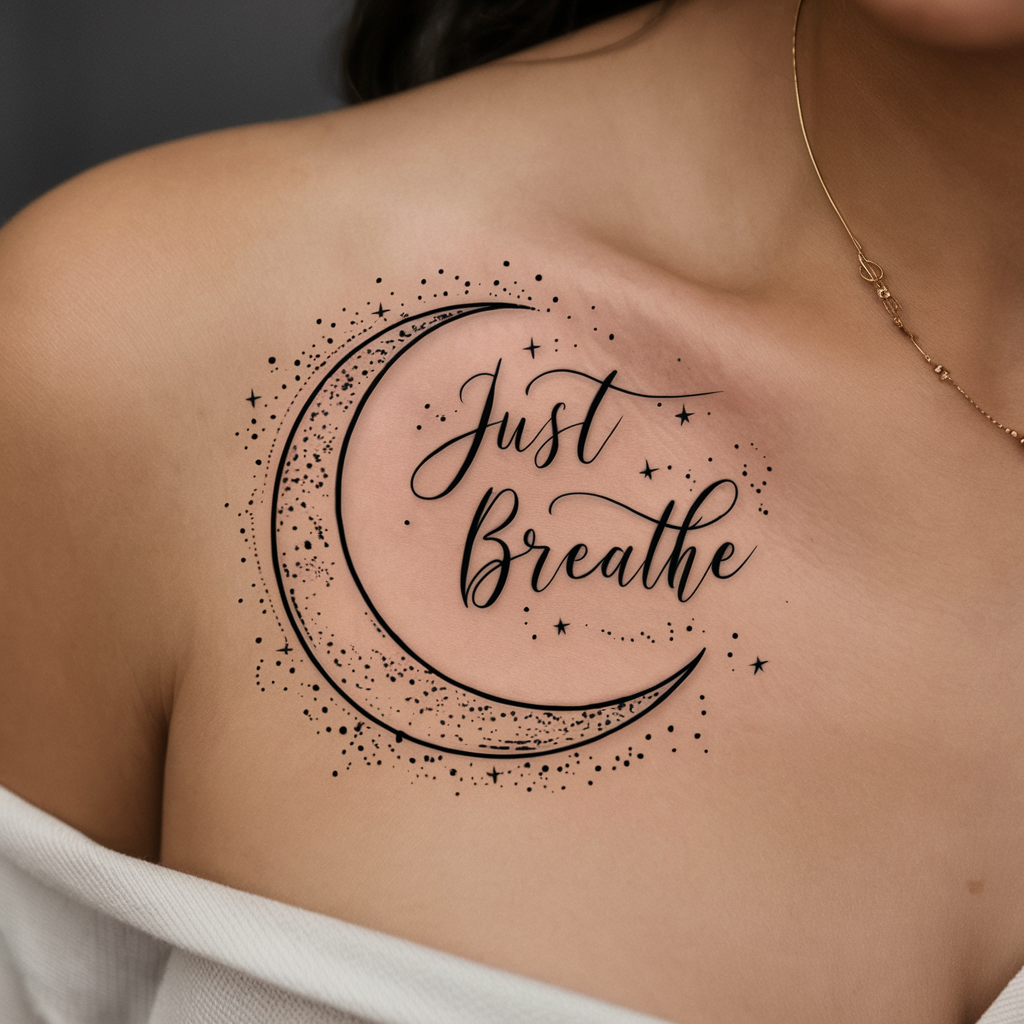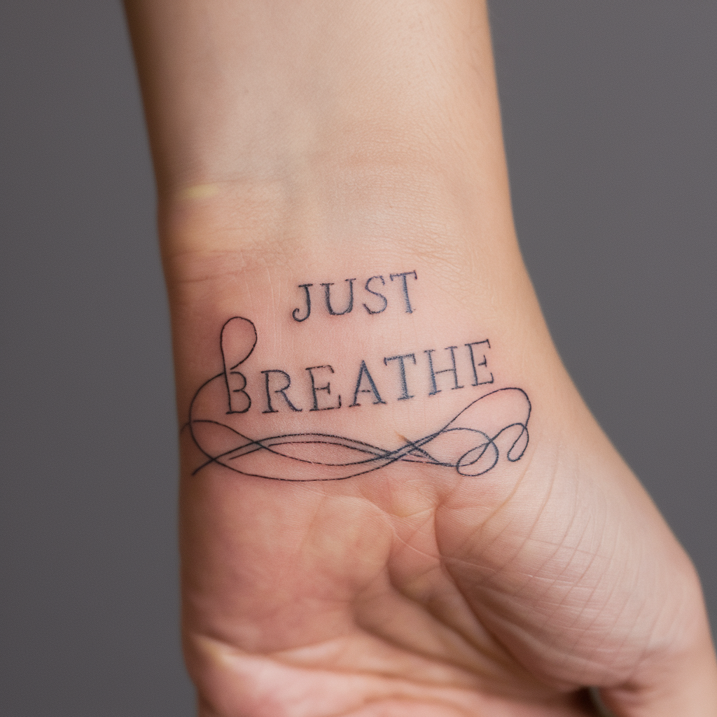 For those who love simplicity, a minimalist “Just Breathe” tattoo works beautifully. The words themselves could be formed into the shape of a breath or a calming line that fades into a whisper.