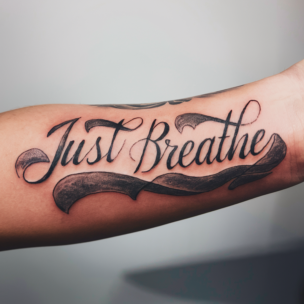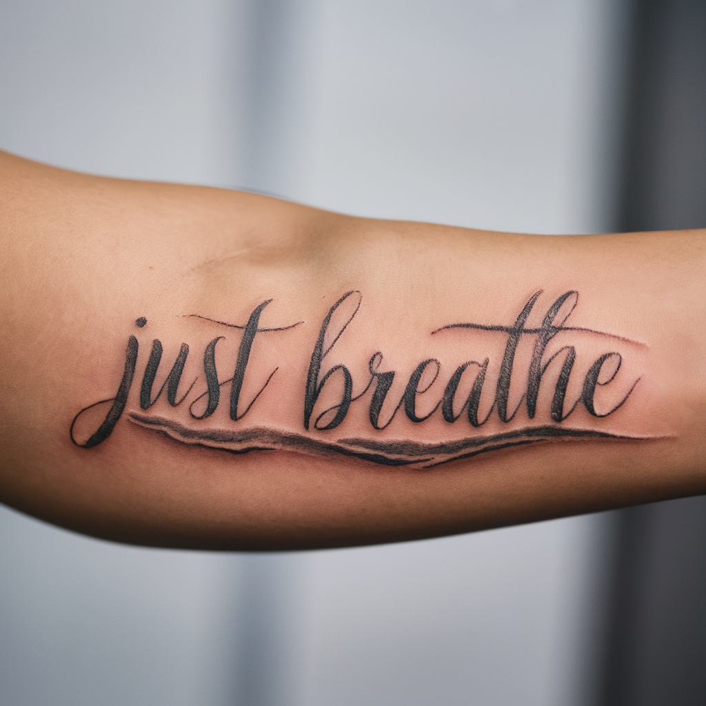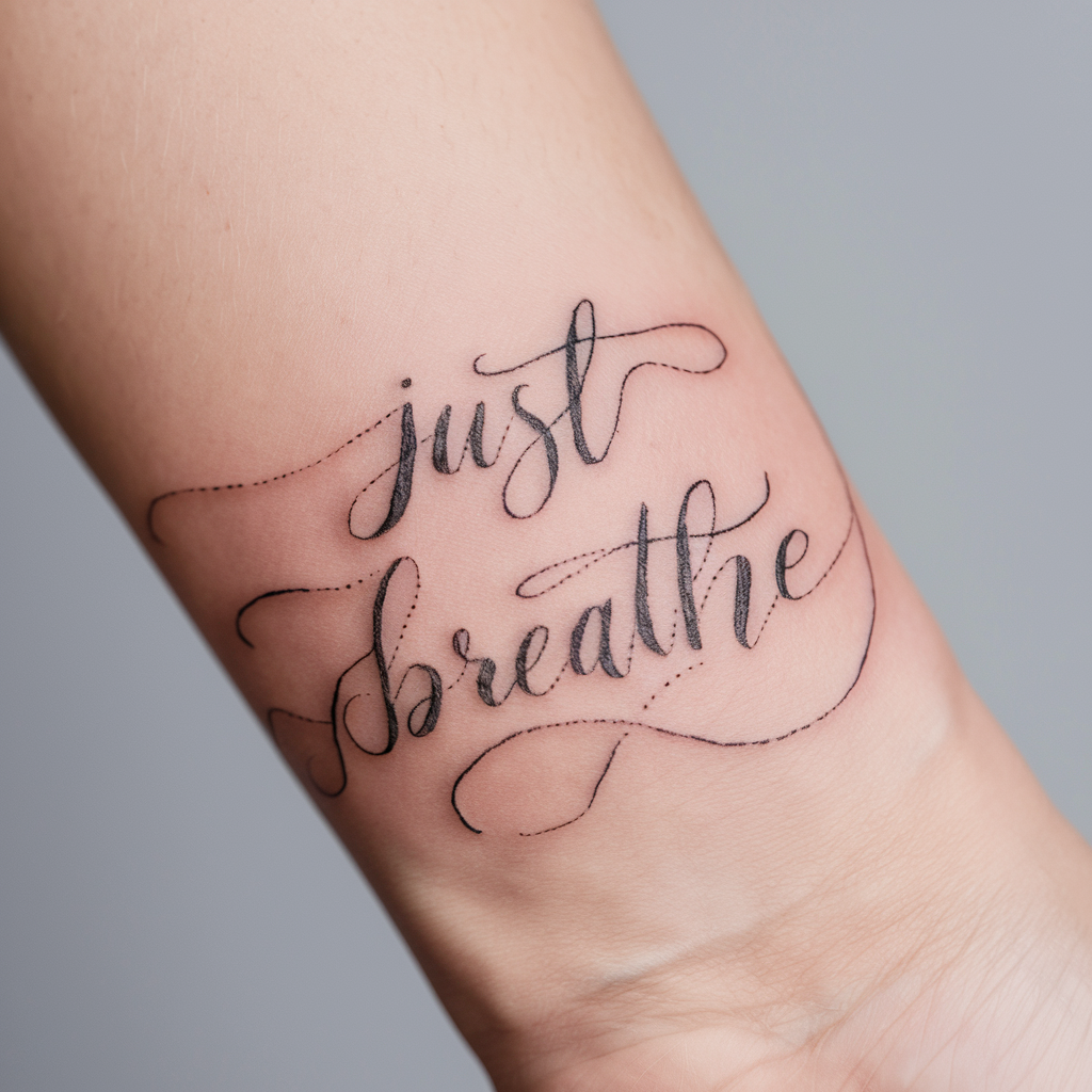 a “Just Breathe” tattoo serves as a powerful reminder to pause, stay grounded, and embrace the present moment.