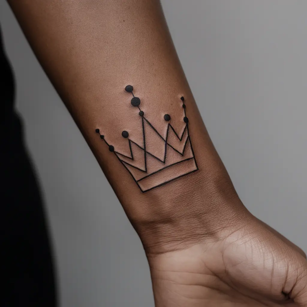 Placement: A small geometric crown fits perfectly on the wrist, ankle, or behind the ear.