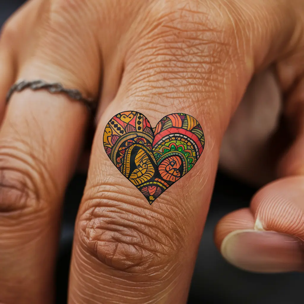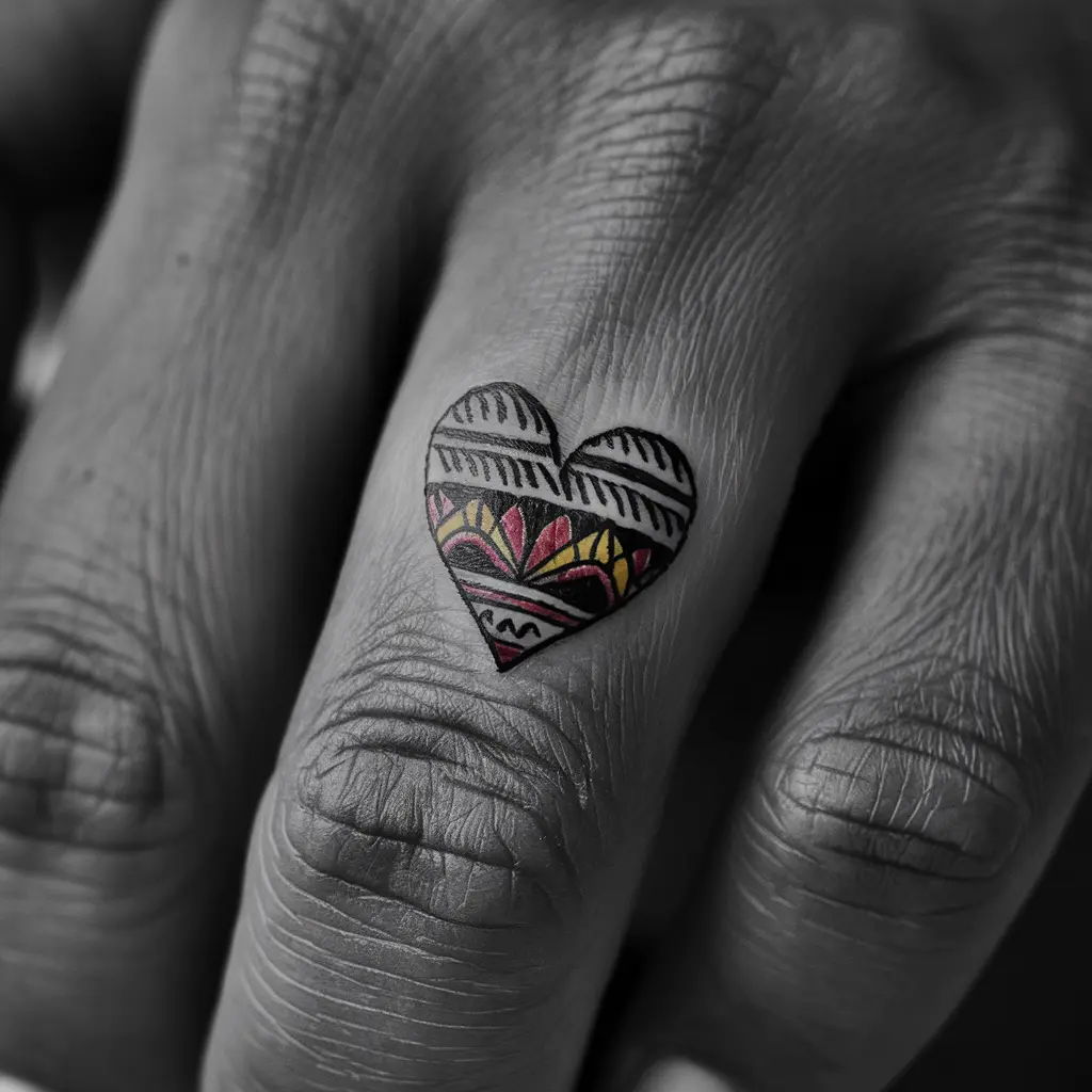 Tattoo Meaning: A small heart filled with African-inspired patterns represents love, culture, and the connection to African roots.