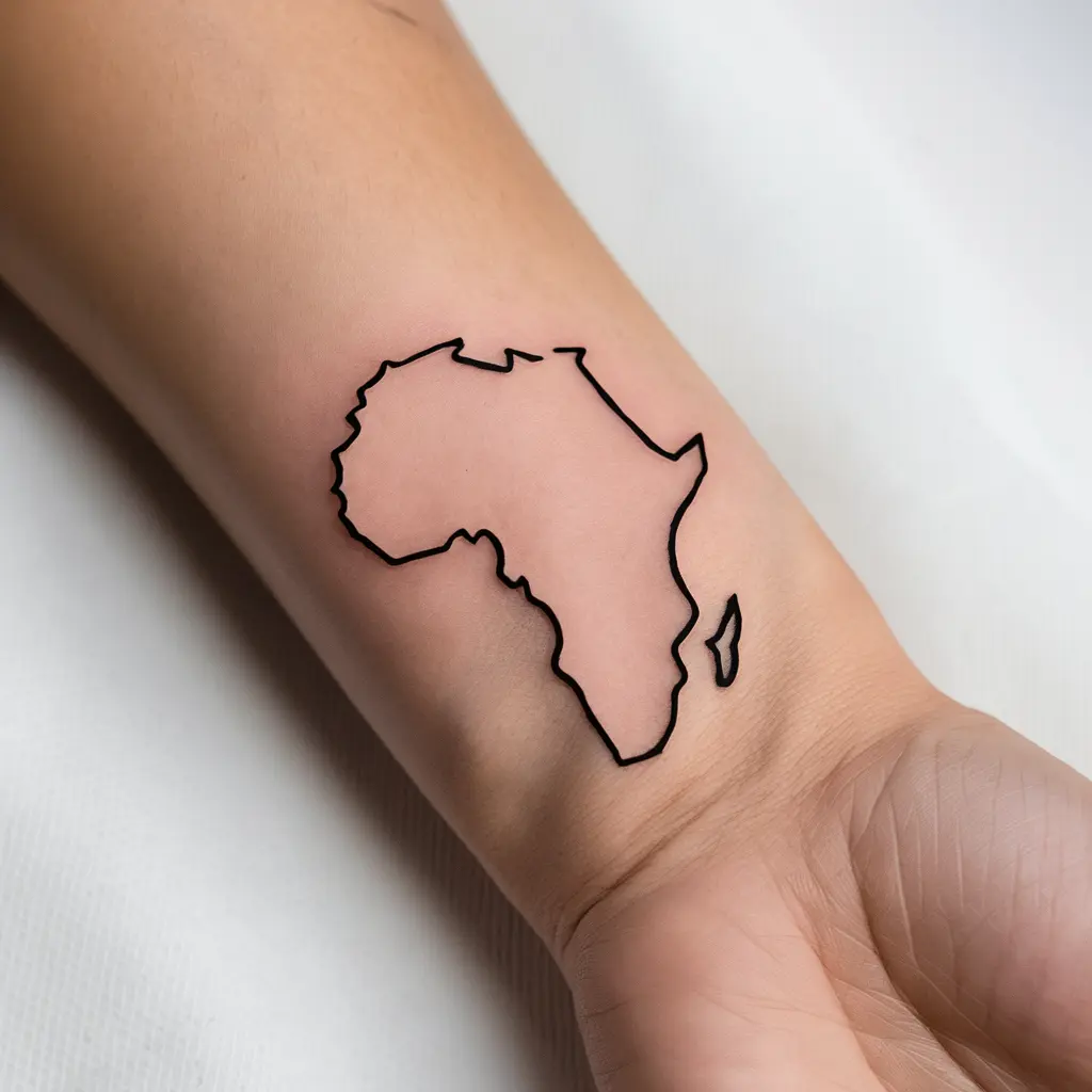 Tattoo Meaning: This simple outline of the African continent represents roots, heritage, and pride in one’s cultural history. It’s a subtle yet powerful design for anyone who feels a deep connection to the African diaspora.