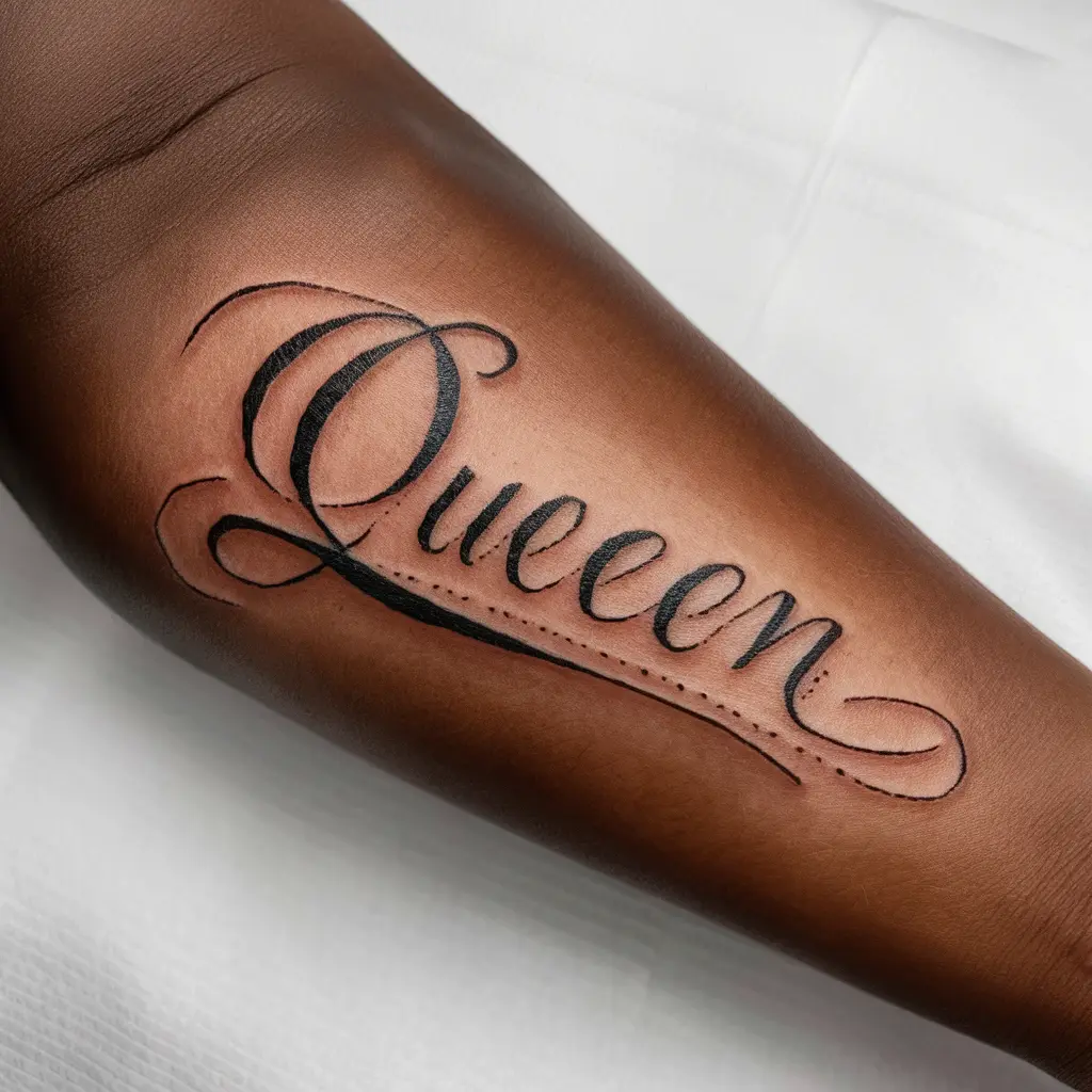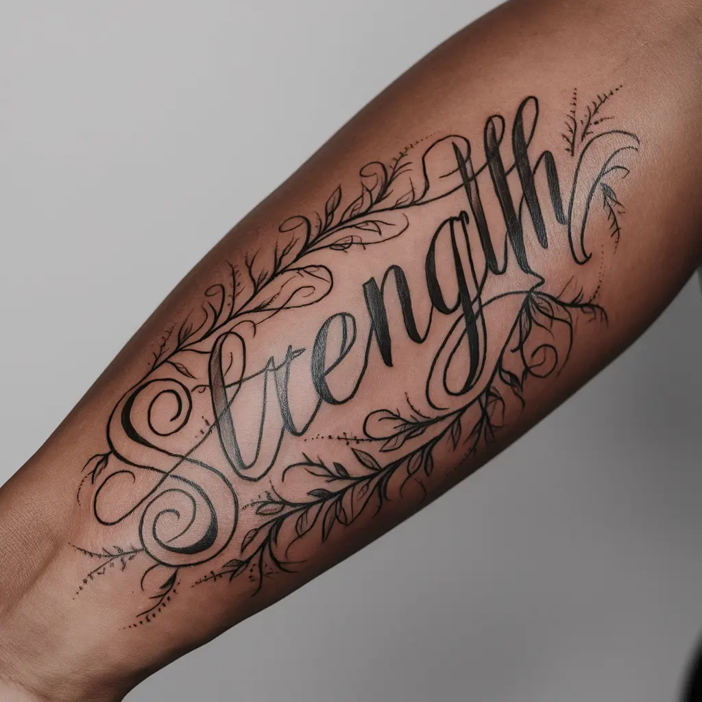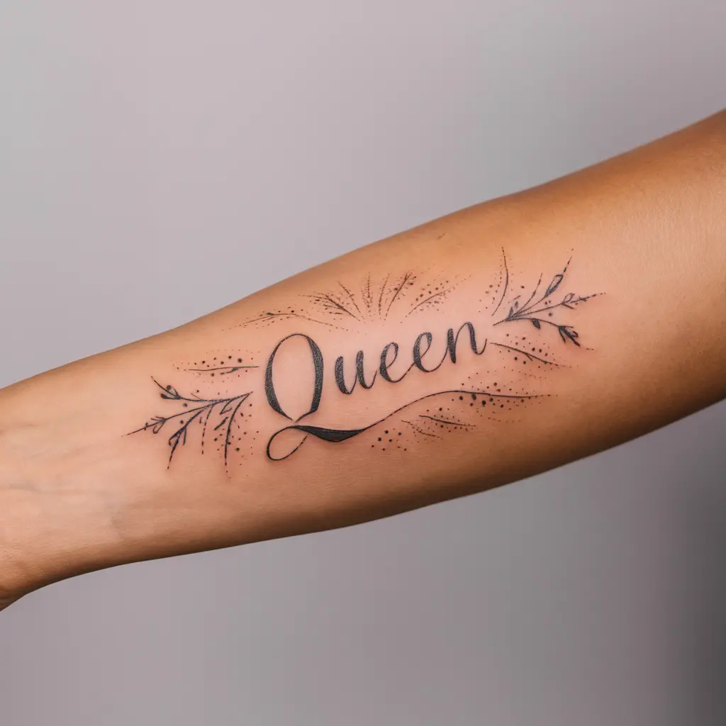 Tattoo Meaning: A word or short phrase like “strength,” “peace,” or “queen” can carry a profound meaning. These words are reminders of personal values or a mantra to live by.
