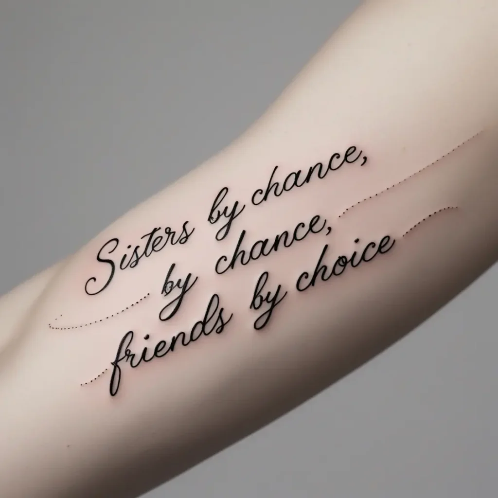 Tattoo Meaning: The quote serves as a reminder that, no matter the circumstances, your sister is someone you’ve chosen to keep close for life.